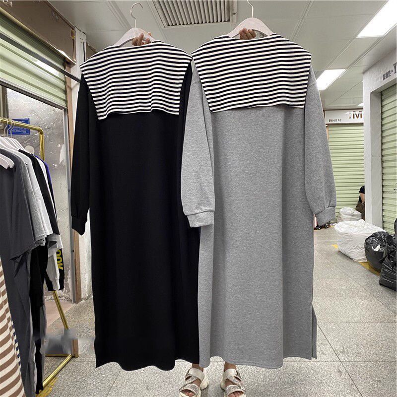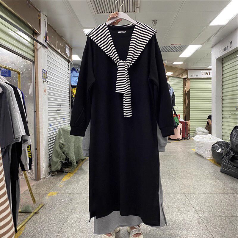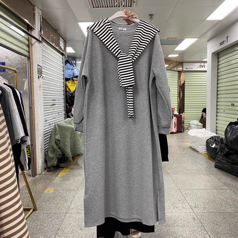 特大码胖mm300斤春秋季宽松休闲中长款卫衣裙女长袖学生T恤连衣裙