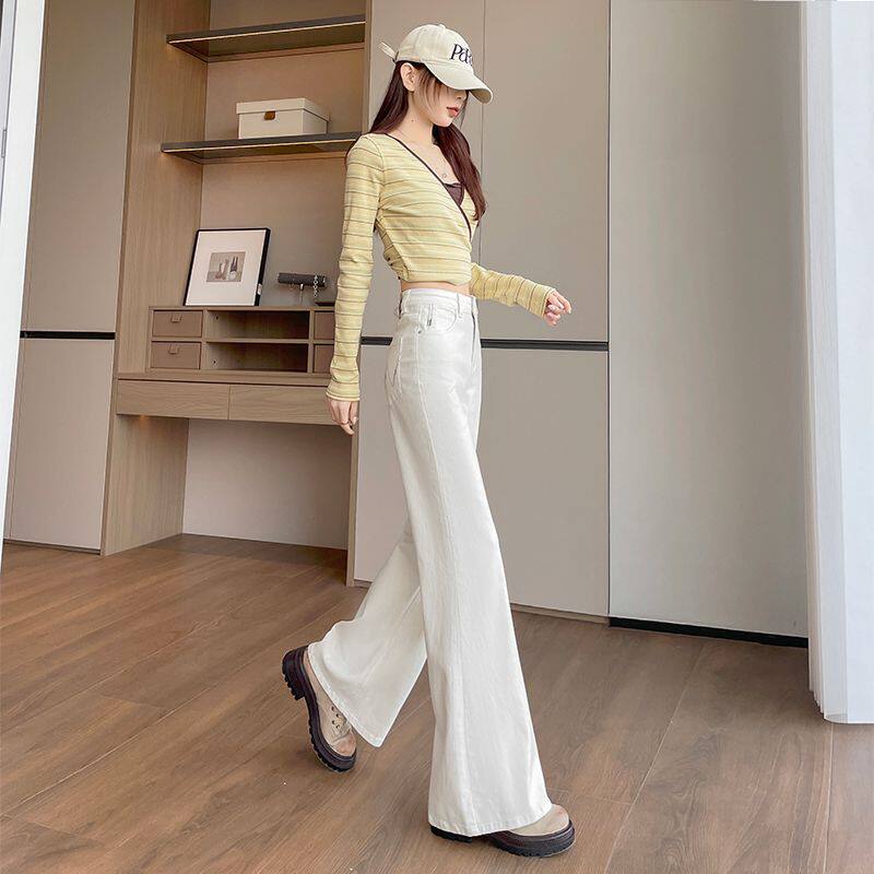 白色裤子阔腿牛仔喇叭裤女2026新款高腰显瘦垂感直筒微喇牛仔裤