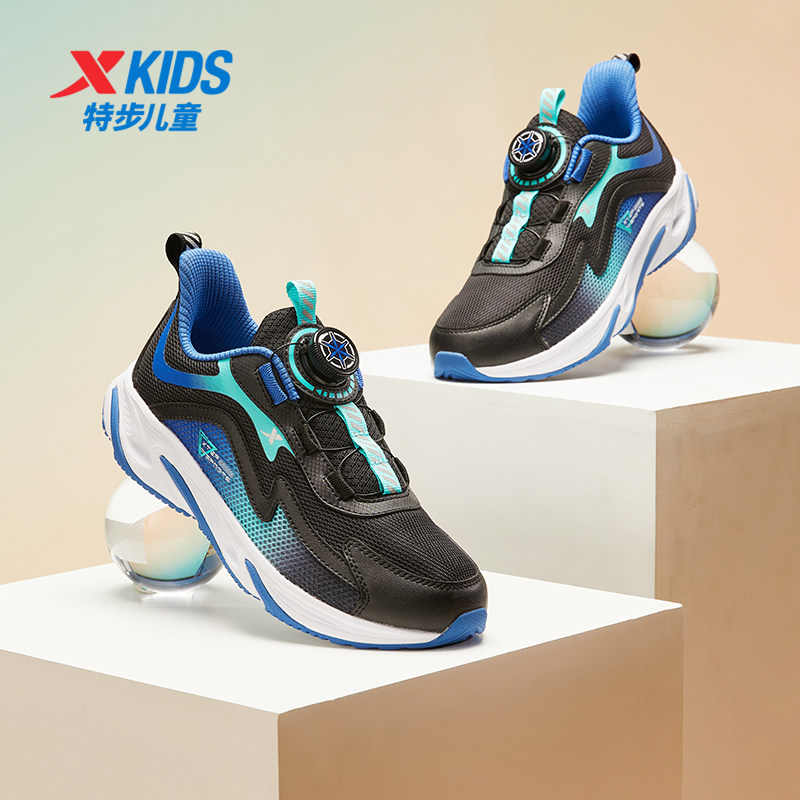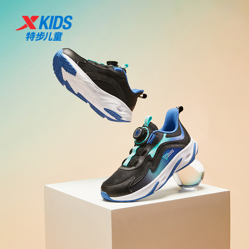 瞬影特步儿童春秋款男童鞋运动鞋旋钮扣中大童鞋子软底休闲跑步鞋