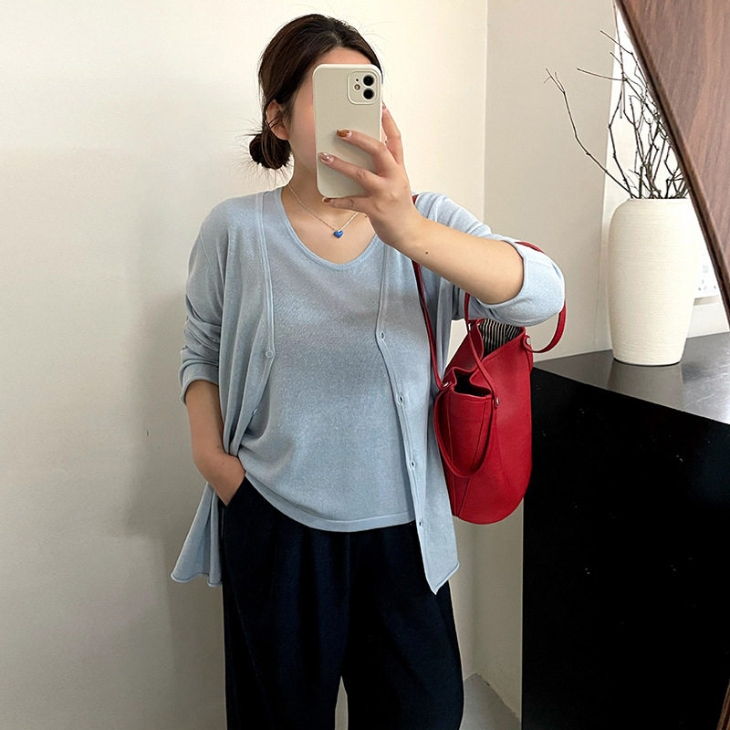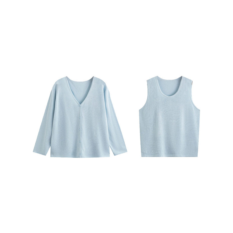 大码女装内搭背心女开衫v领针织套装2026春款胖mm休闲两件套23772