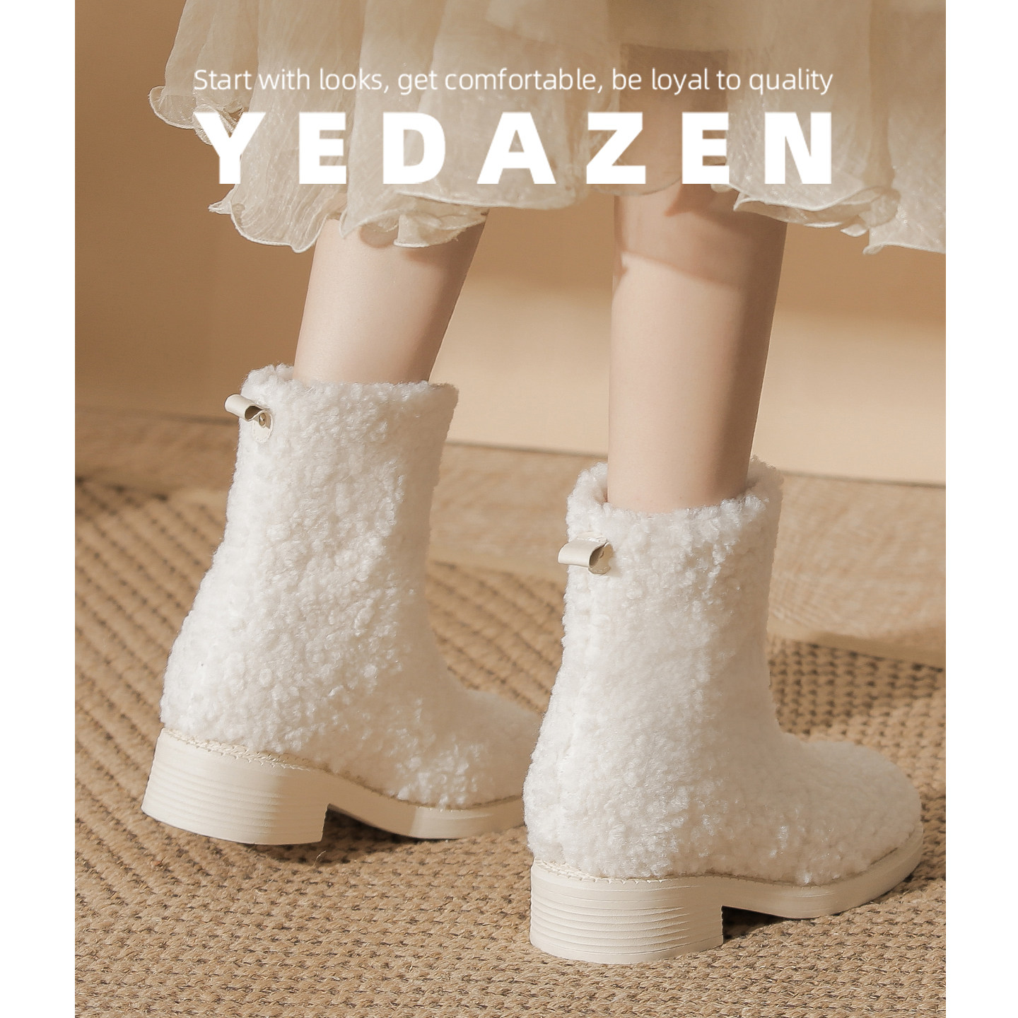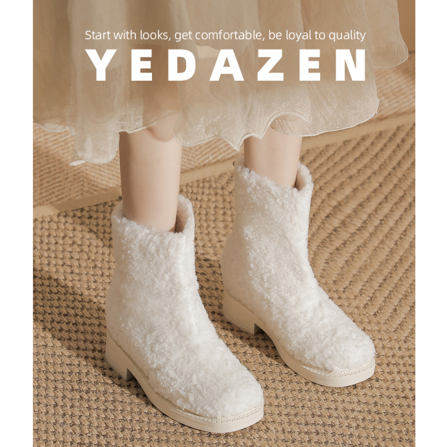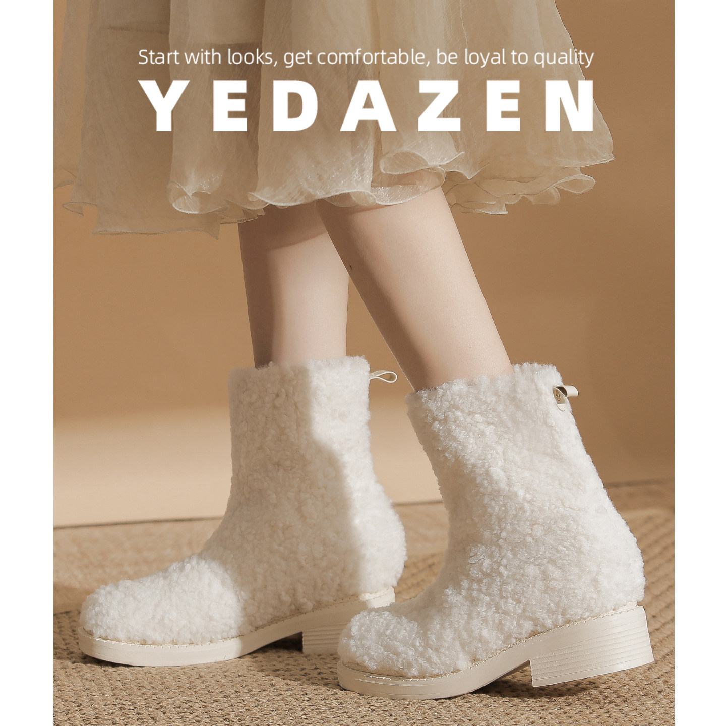 白色内增高毛毛加绒雪地鞋女款2026新款厚底短筒靴子保暖毛绒棉靴