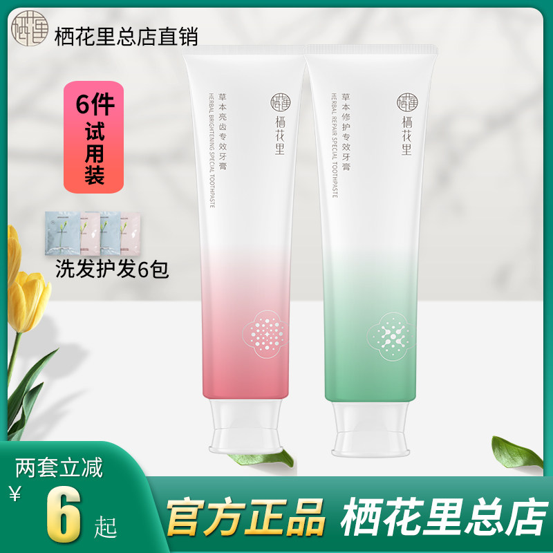 栖花里牙膏修复清新正品儿童草本修护亮白牙齿清洁口腔官方旗舰店