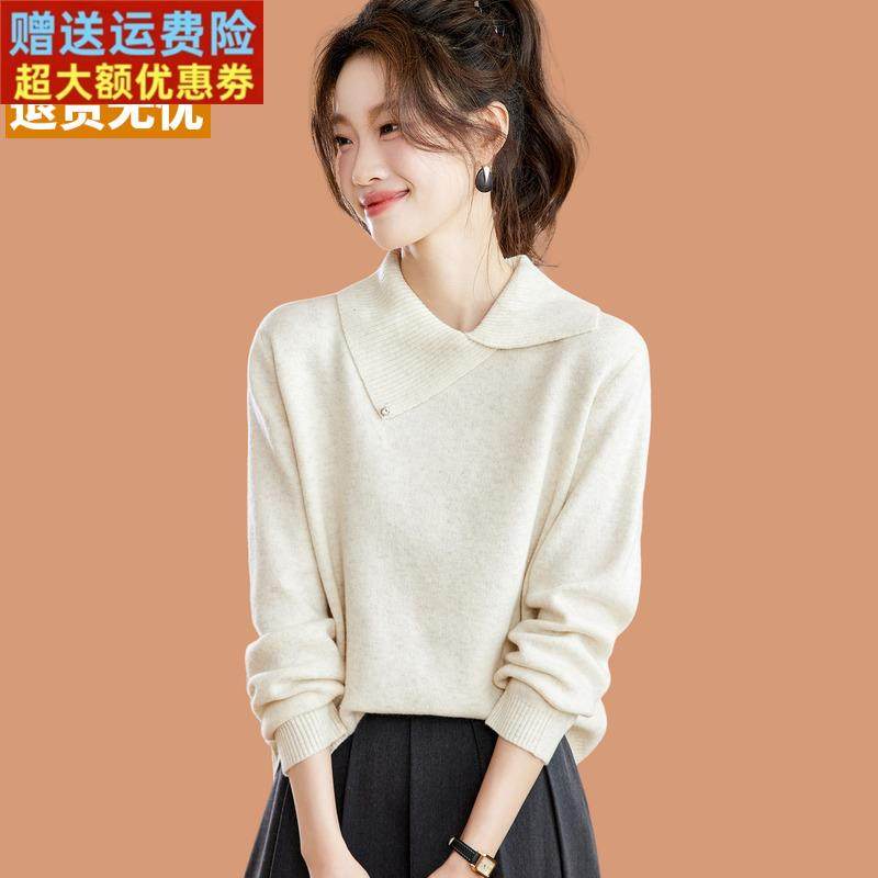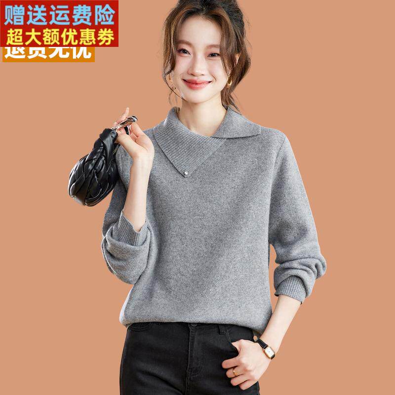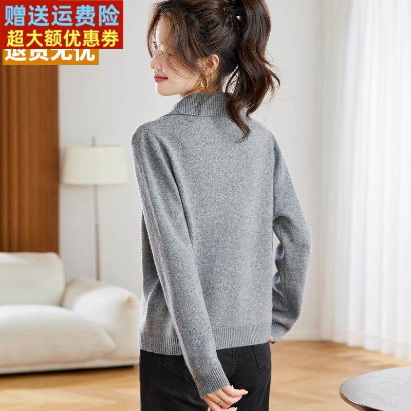 超好看紫色毛衣女款2025新款爆款洋气内搭可外穿打底衫翻领羊毛衫