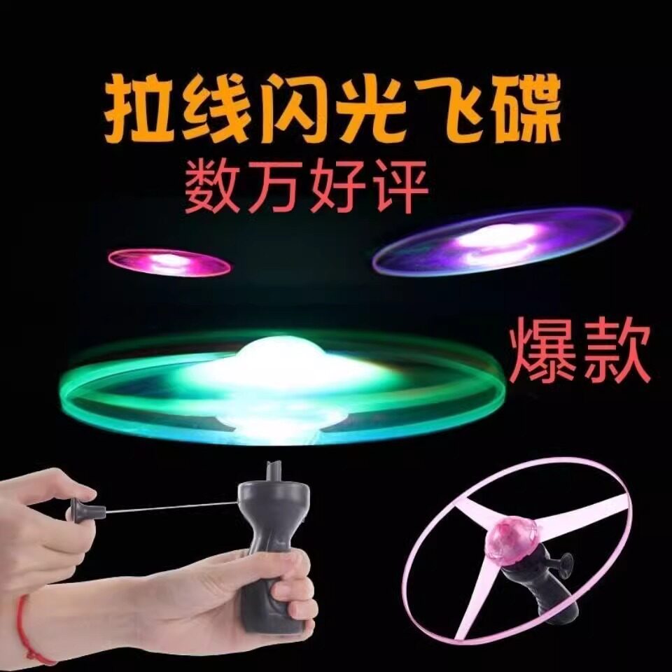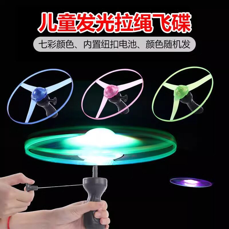 加厚大号发光拉线飞碟飞天仙子玩具儿童户外发光竹蜻蜓摆地摊玩具