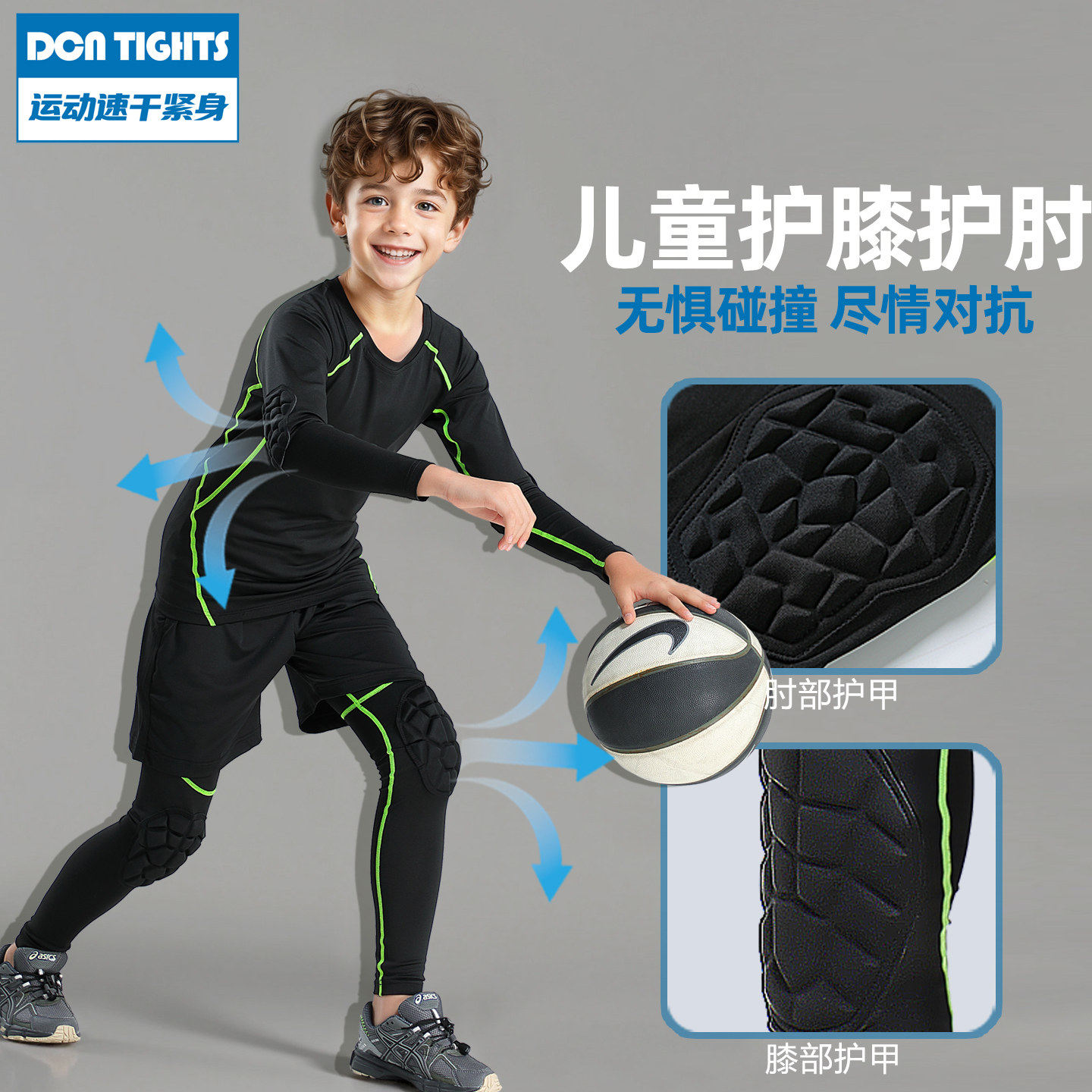 儿童体能训练服速干护肘紧身衣篮球打底裤带护膝防撞防摔运动套装