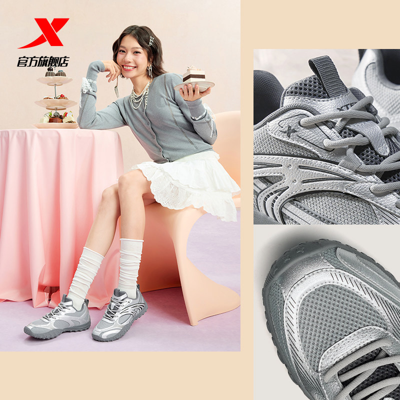 特步小芭蕾丨休闲鞋女鞋网面正品复古芭蕾鞋德训鞋轻便薄底运动鞋