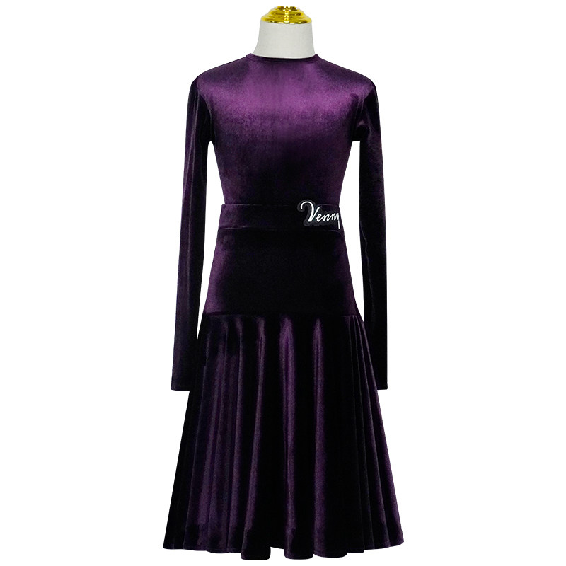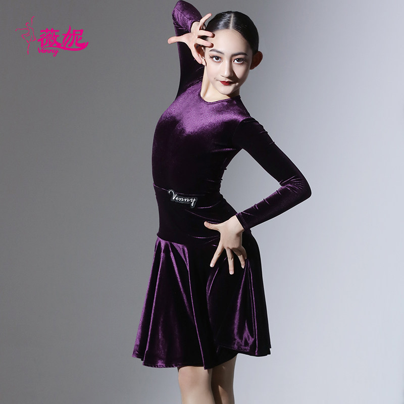 薇妮国标舞拉丁舞裙女童无鱼骨丝绒演出规定服少儿体协比赛舞蹈服
