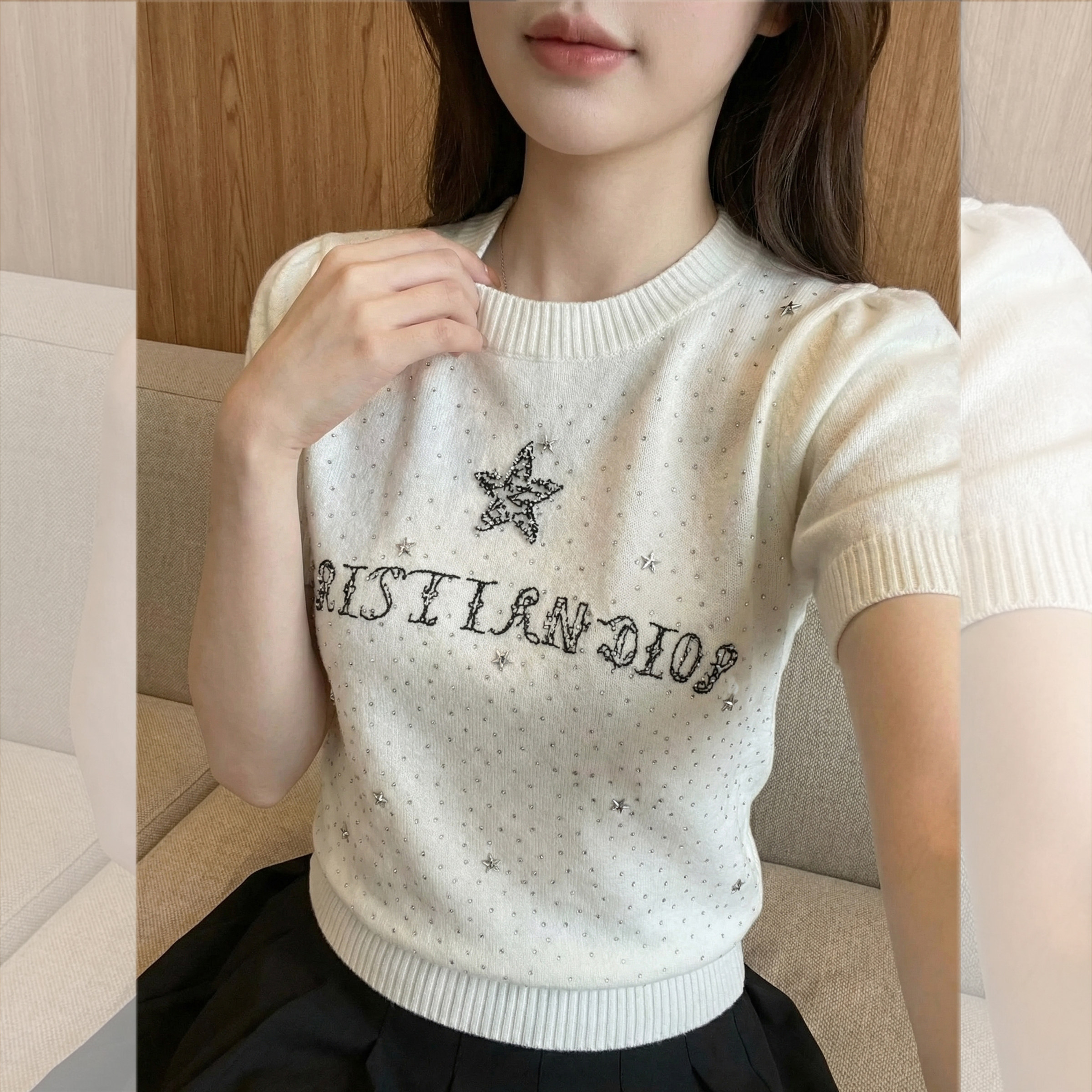 钟菲菲春款2026新款女装针织chic气质上衣短袖高端小资独特漂亮