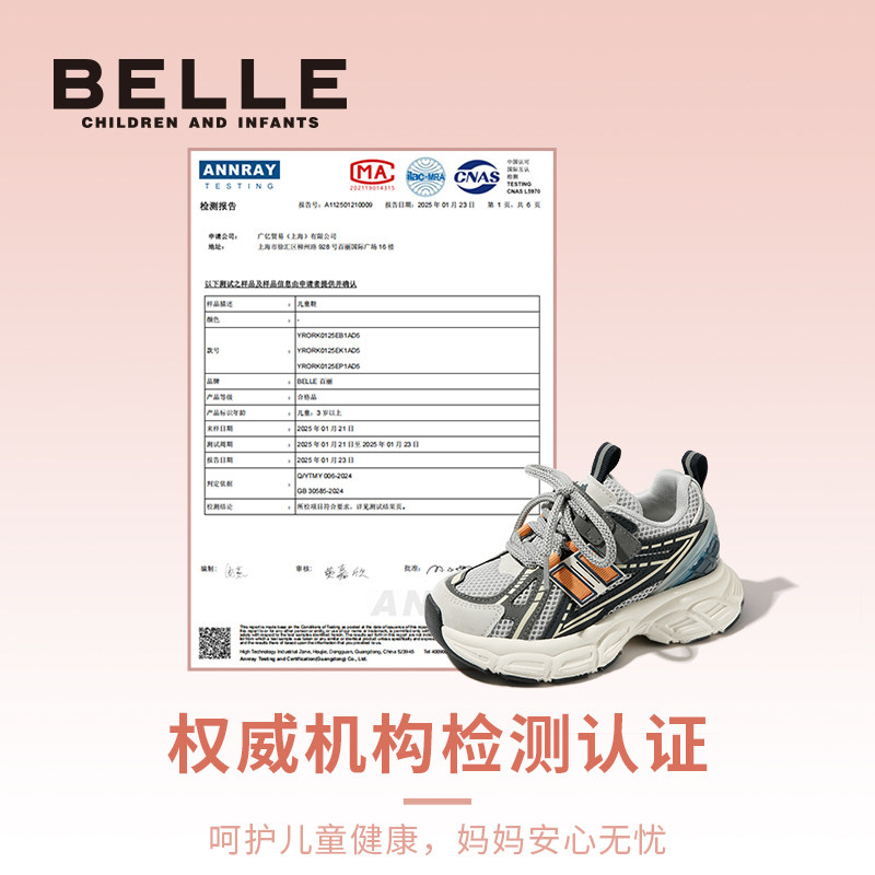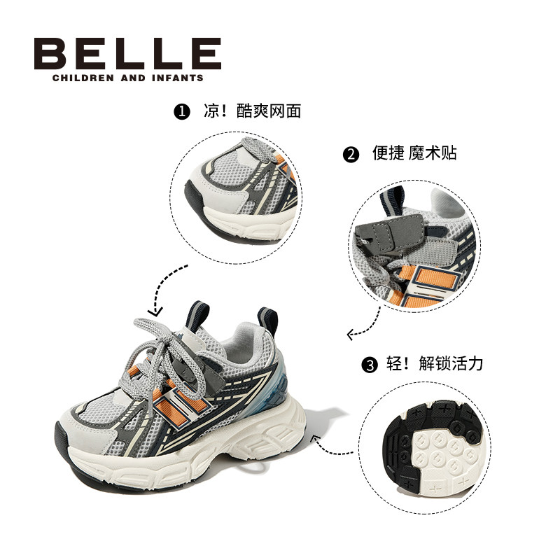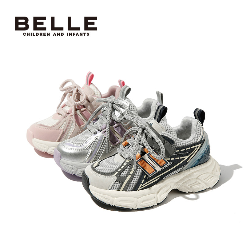 百丽童鞋女童老爹鞋儿童透气运动鞋春季新款男童跑步鞋大童网面鞋