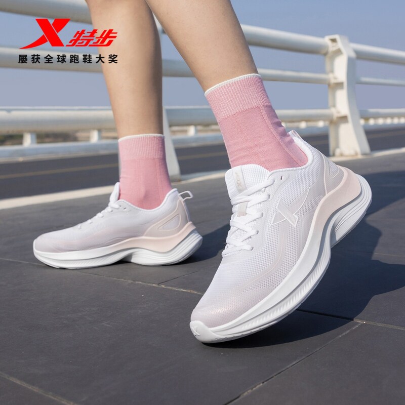 特步轻风丨跑鞋女款舒适跑步鞋减震防滑网面轻便软底休闲运动鞋子