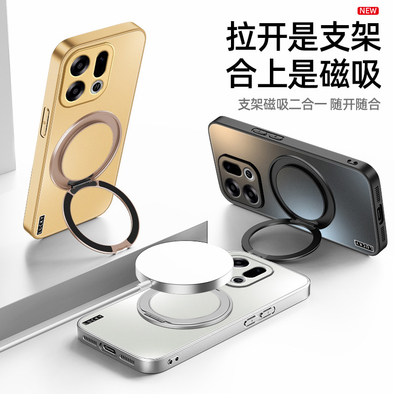 适用oppoFindx9手机壳新款Findx9pro保护套防摔旋转支架磁吸亚克力磨砂哑光超薄肤感男款女lucky英文