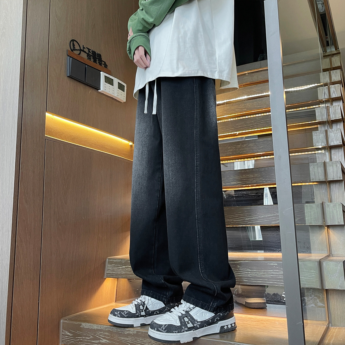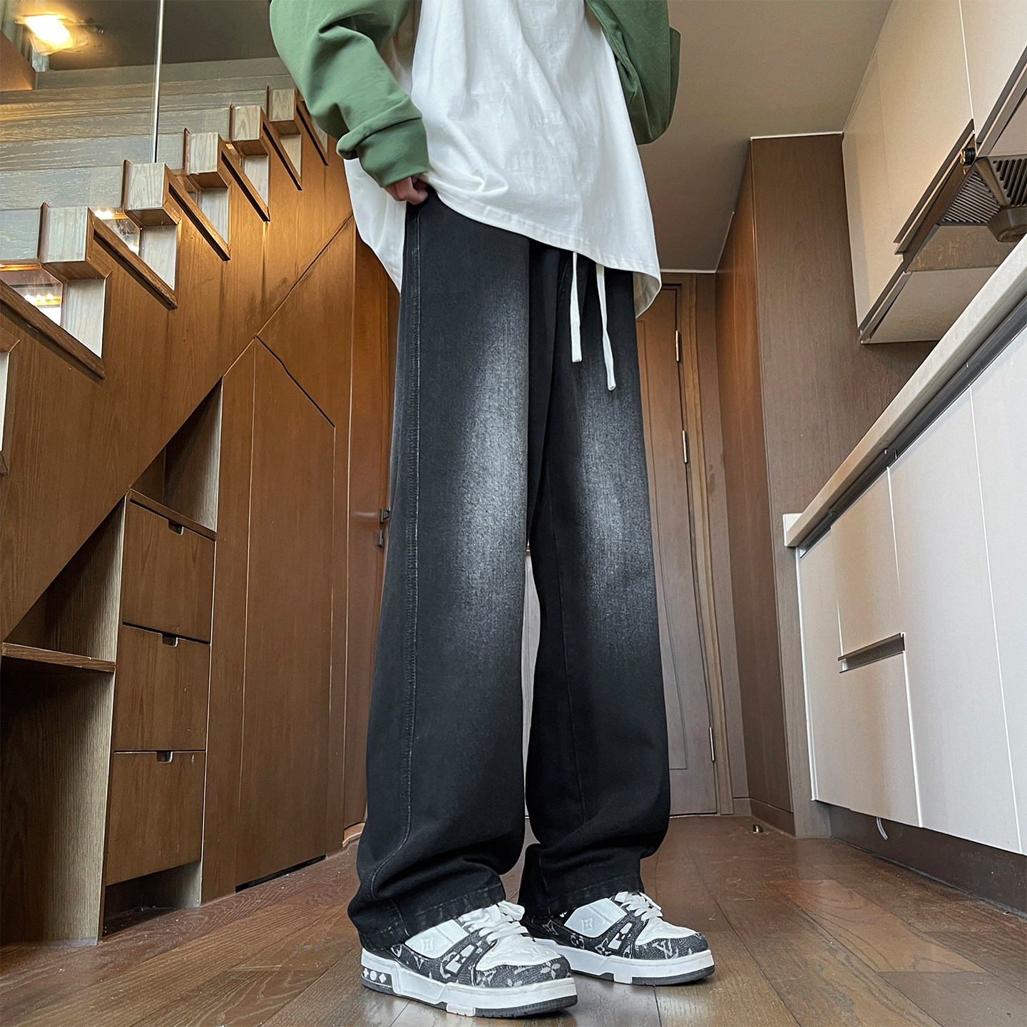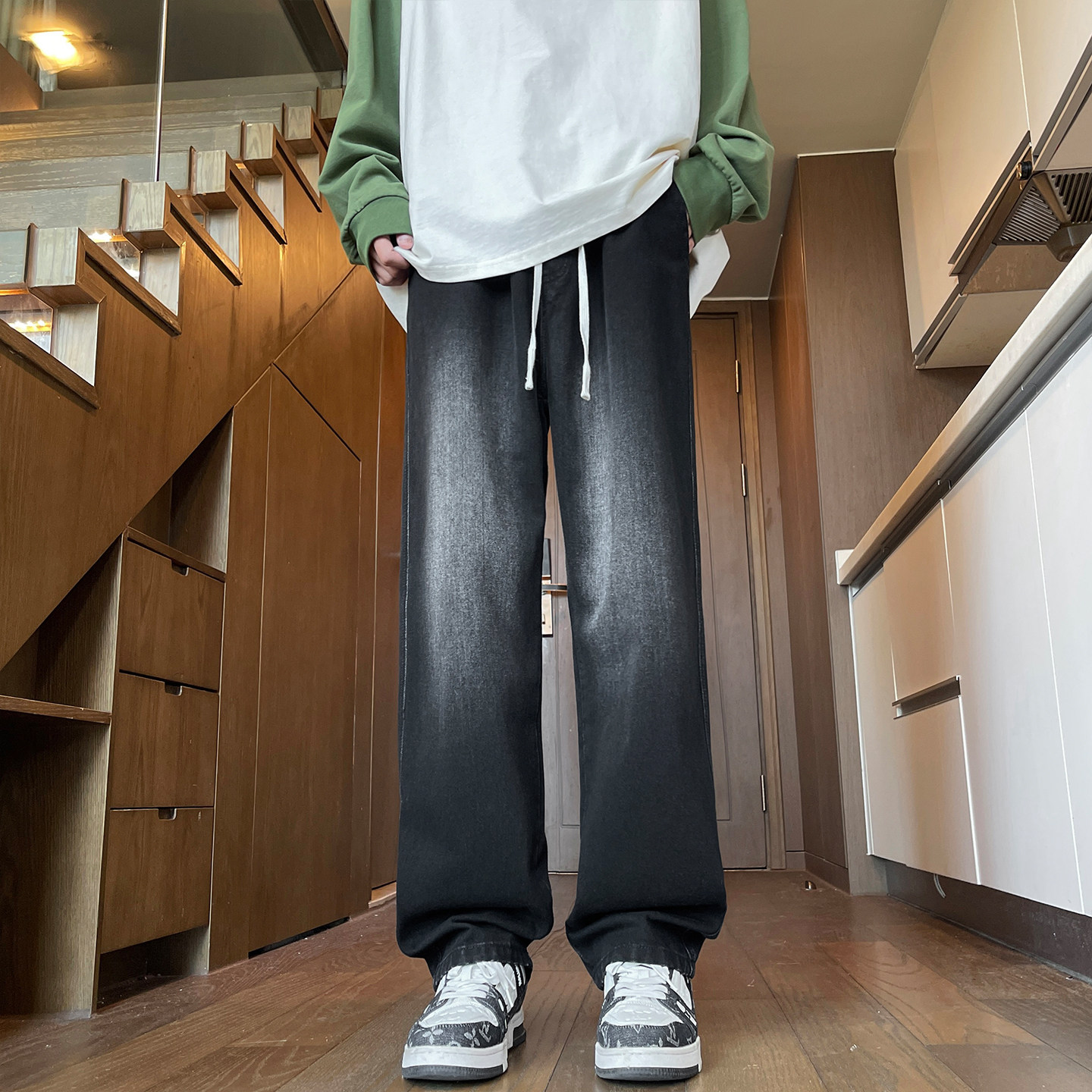 青少年加绒加厚裤子男生冬季190高个子加长黑色牛仔裤男款直筒裤