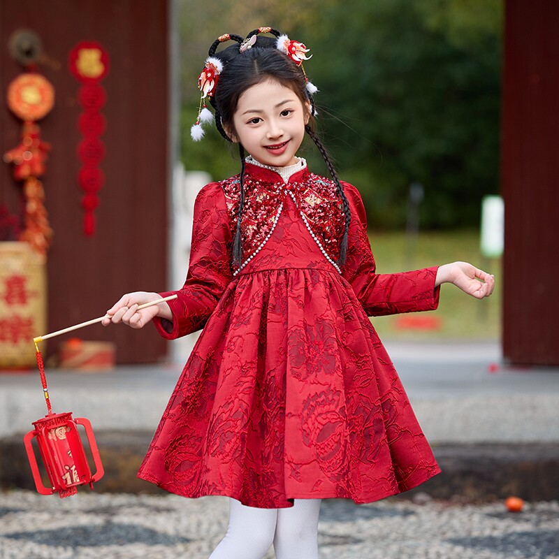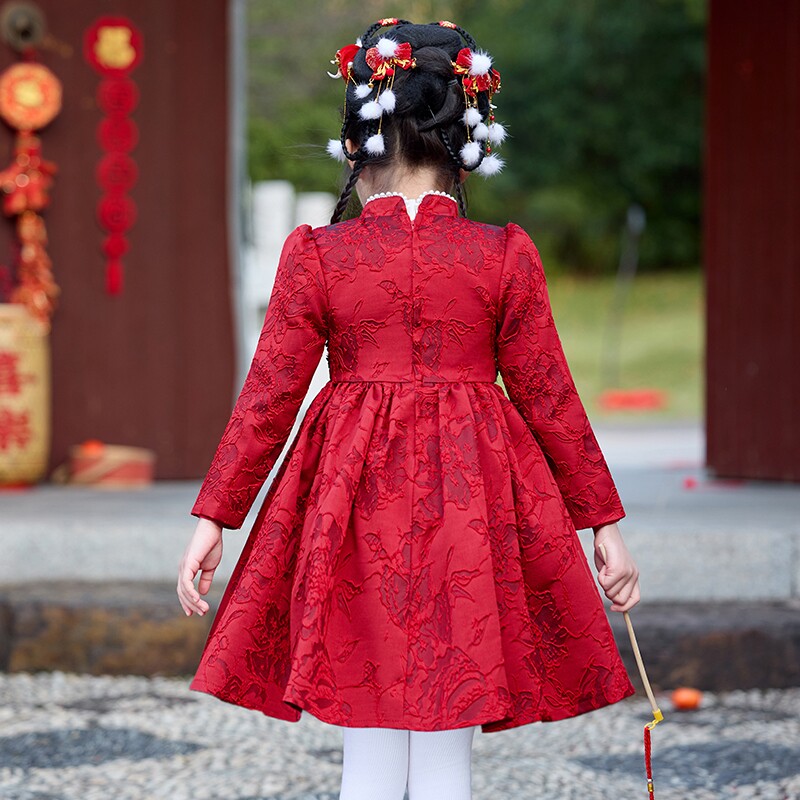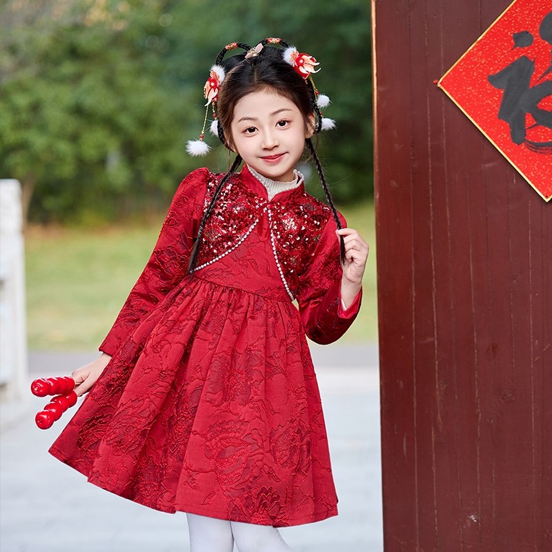 女童旗袍连衣裙冬季拜年服新中式裙子2026新款过年喜庆公主裙冬款