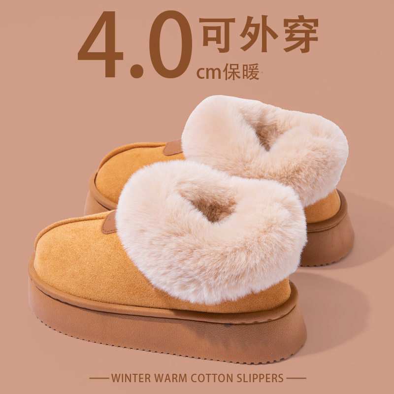 棉鞋女款冬季2025新款家居厚底加绒保暖外穿雪地靴全包跟棉拖鞋女