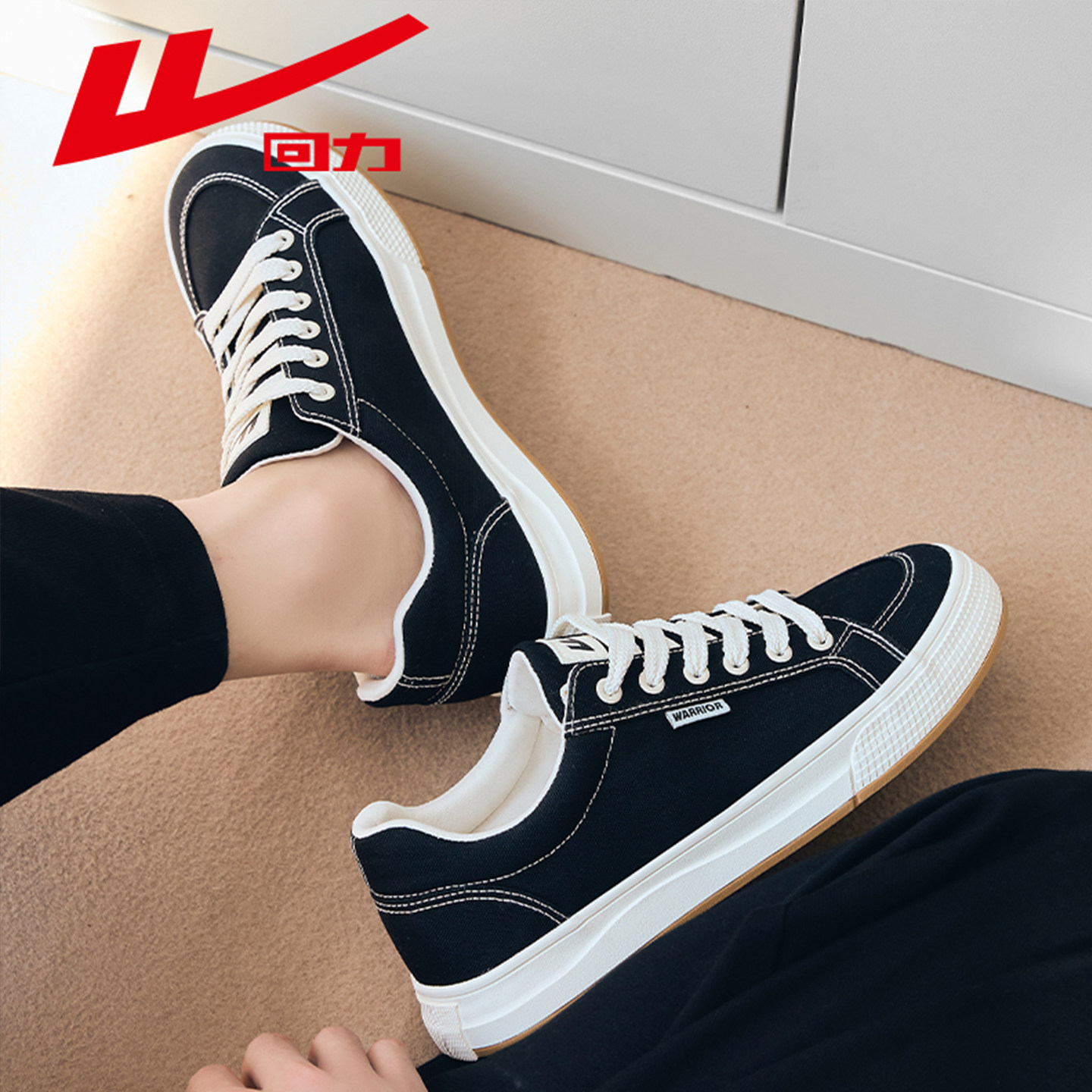 回力黑色帆布鞋男鞋2026春季新款低帮透气休闲运动百搭男款板鞋子