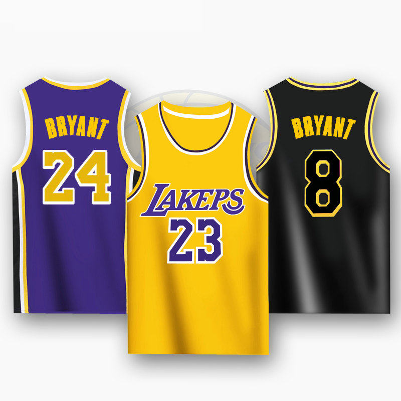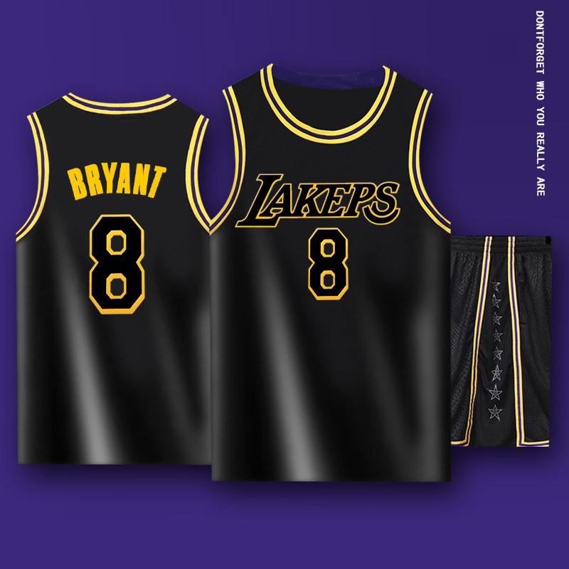 篮球服套装24号8科比23詹姆斯比赛球衣白紫黄色定制有儿童