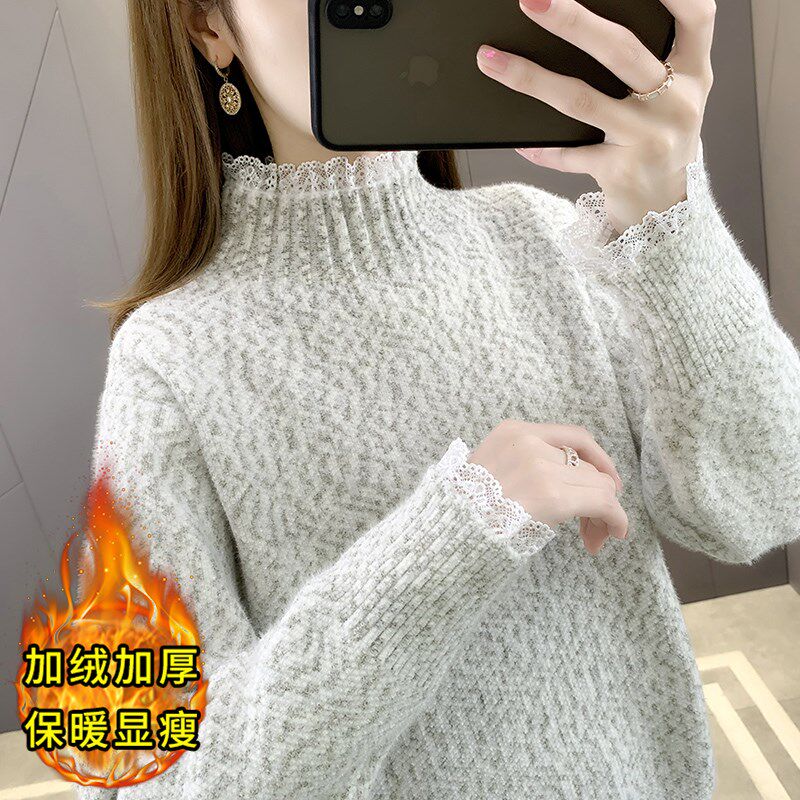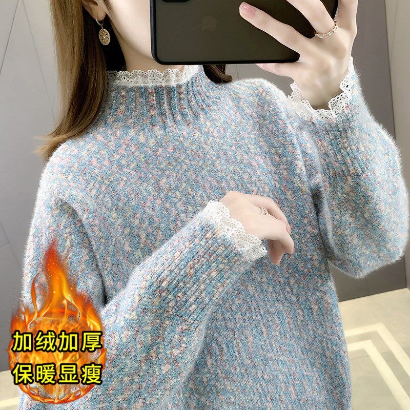 毛衣女款2024新款冬季宽松慵z懒风加绒加厚内搭半高领打底衫女秋