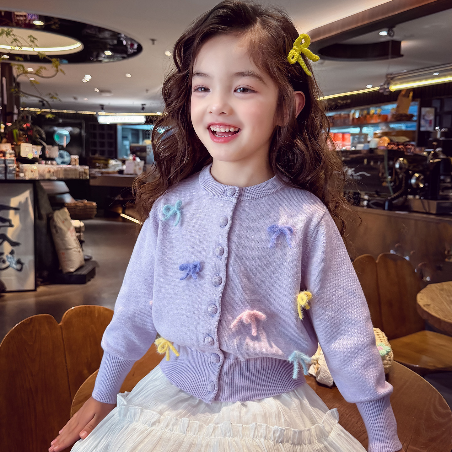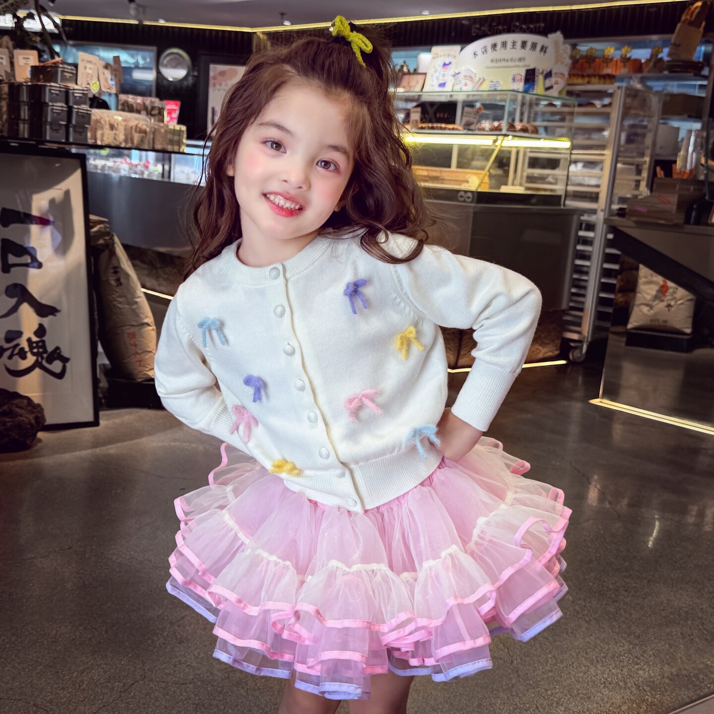 米米哈罗女童短裙套装春装2026新款女孩两件套儿童针织开衫套装裙