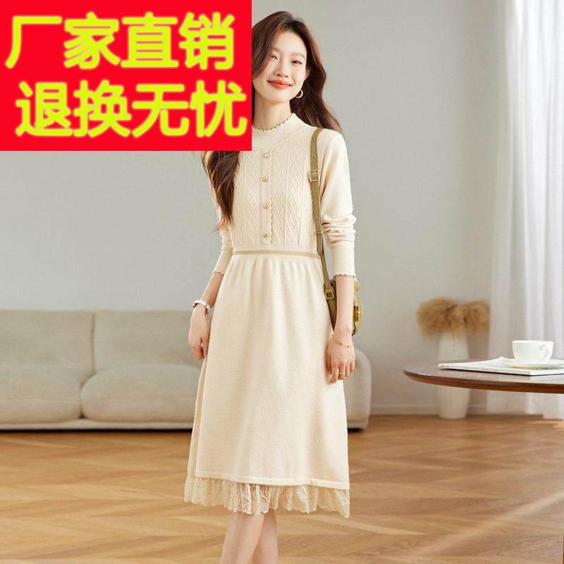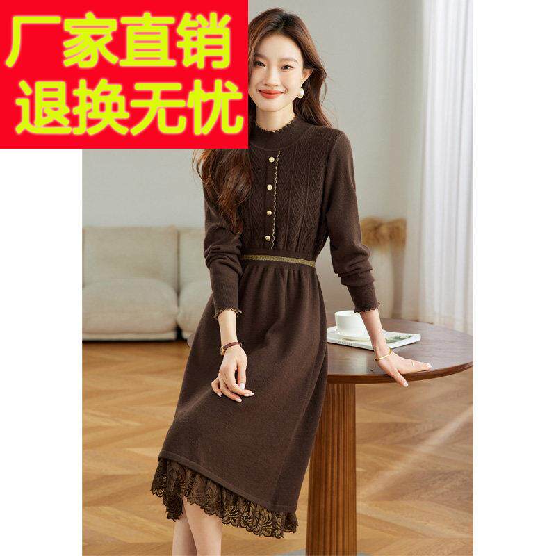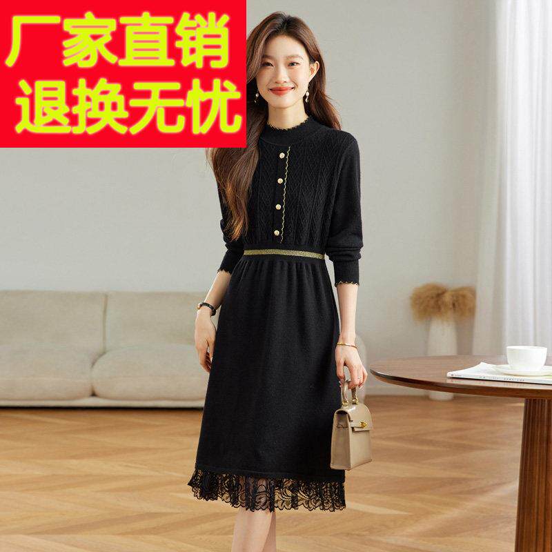 秋冬配大衣的内搭连衣裙2024年新款轻奢高级感羊毛针织打底毛衣裙