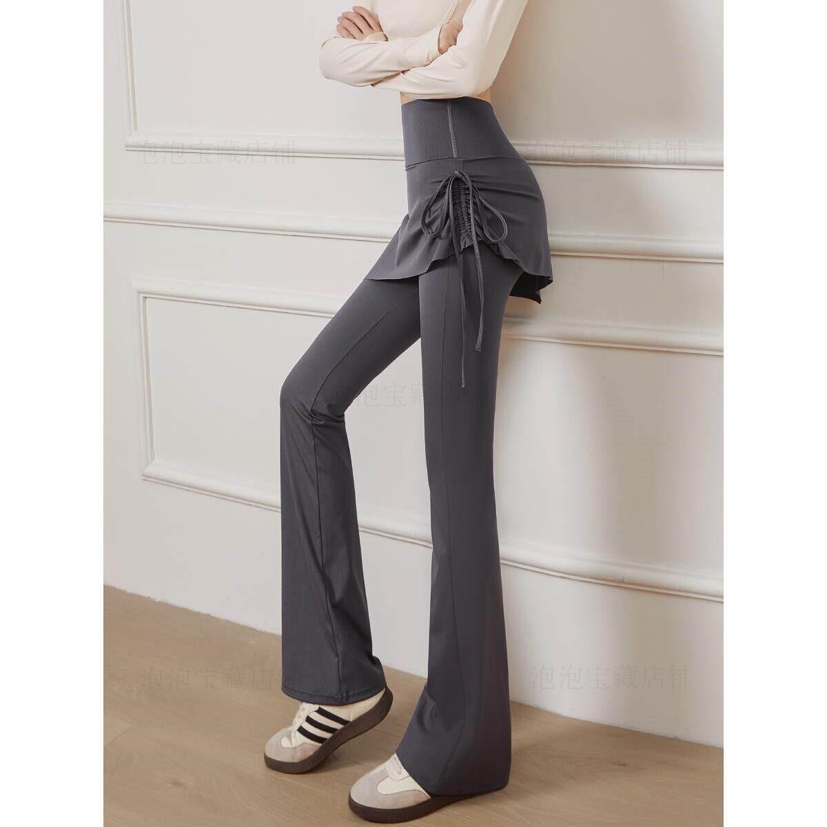 瑜伽裤带屁帘套装假两件瑜伽裤微喇女遮挡裙喇叭健身裙子的裤子11