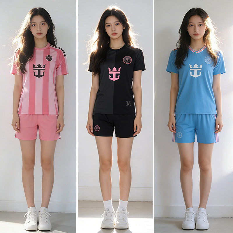 足球服女粉色套装定制学生训练短袖女生体育考试运动服c罗足球衣