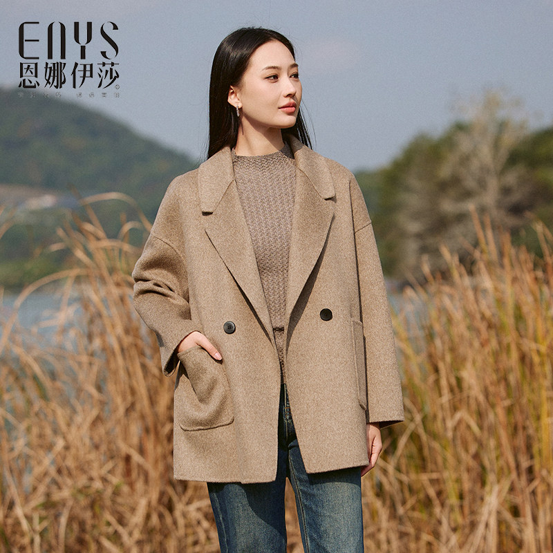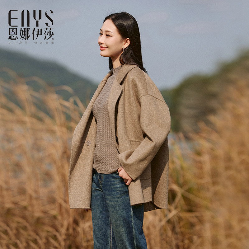 显瘦加厚高奢中长款双面呢外套短款经典冬季宽松落肩袖羊毛大衣女