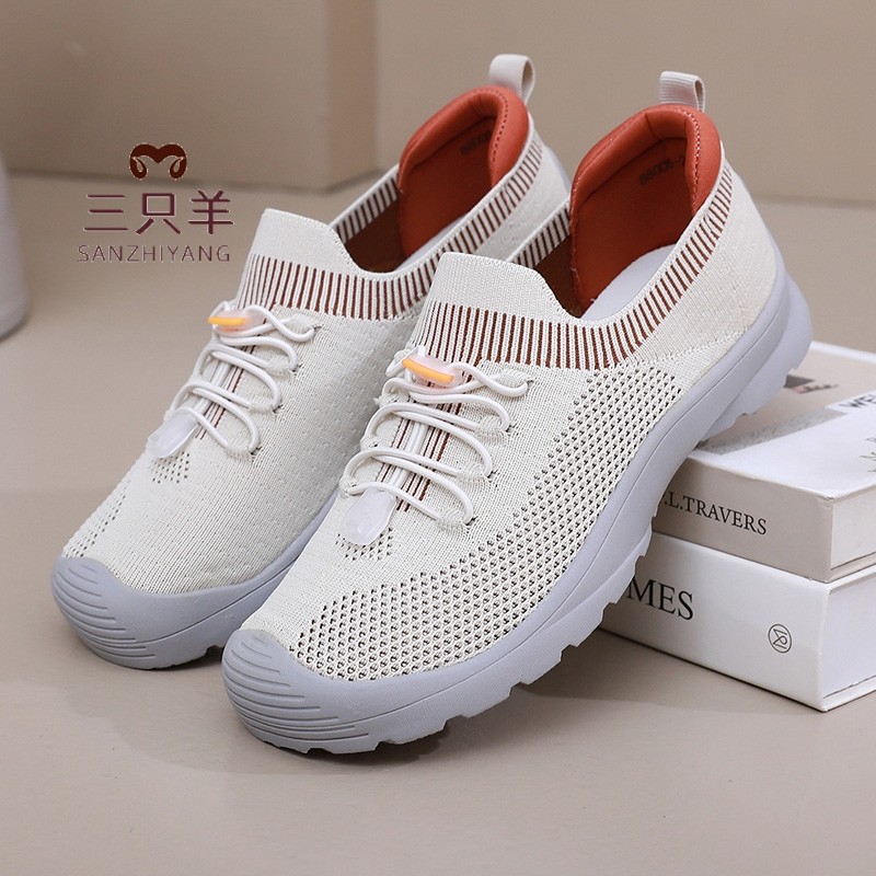 三只羊2026新款一脚蹬妈妈凉鞋夏季网面软底透气镂空宽松健步女鞋