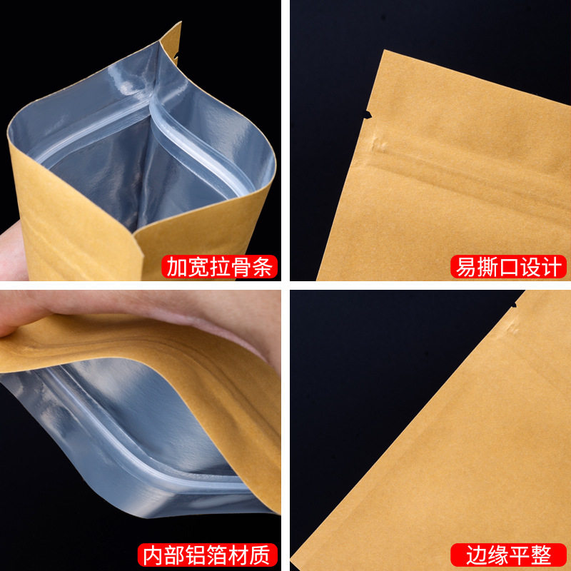 牛皮纸自封袋拉骨平底食品茶叶干货特产包装礼品封口袋大小包邮