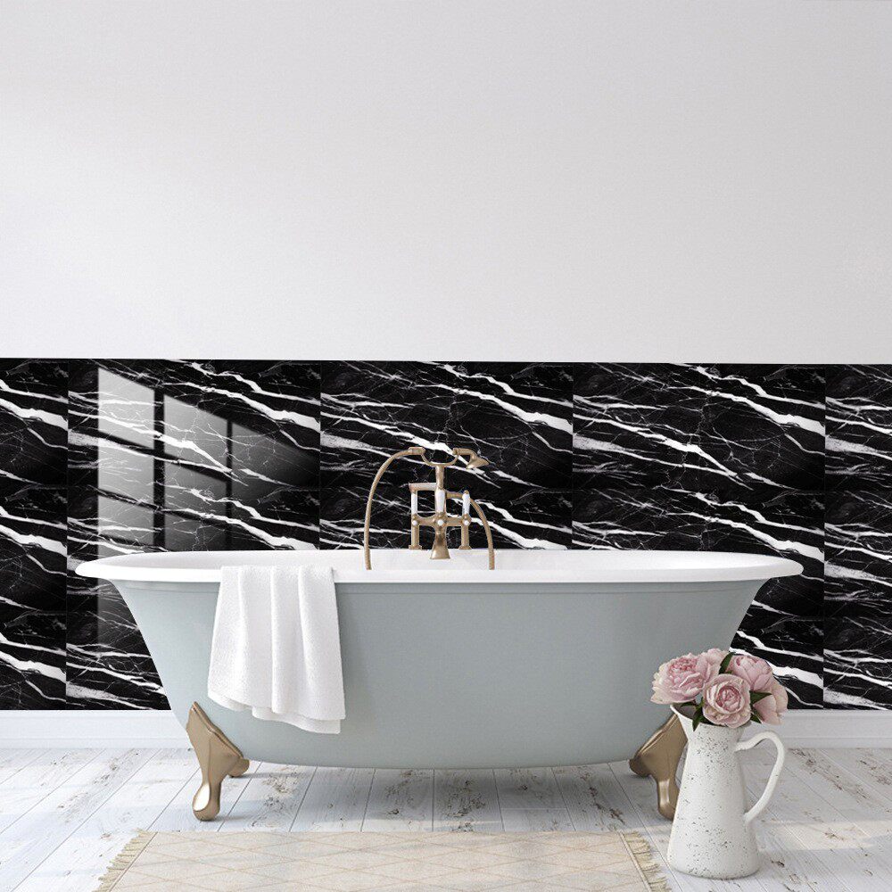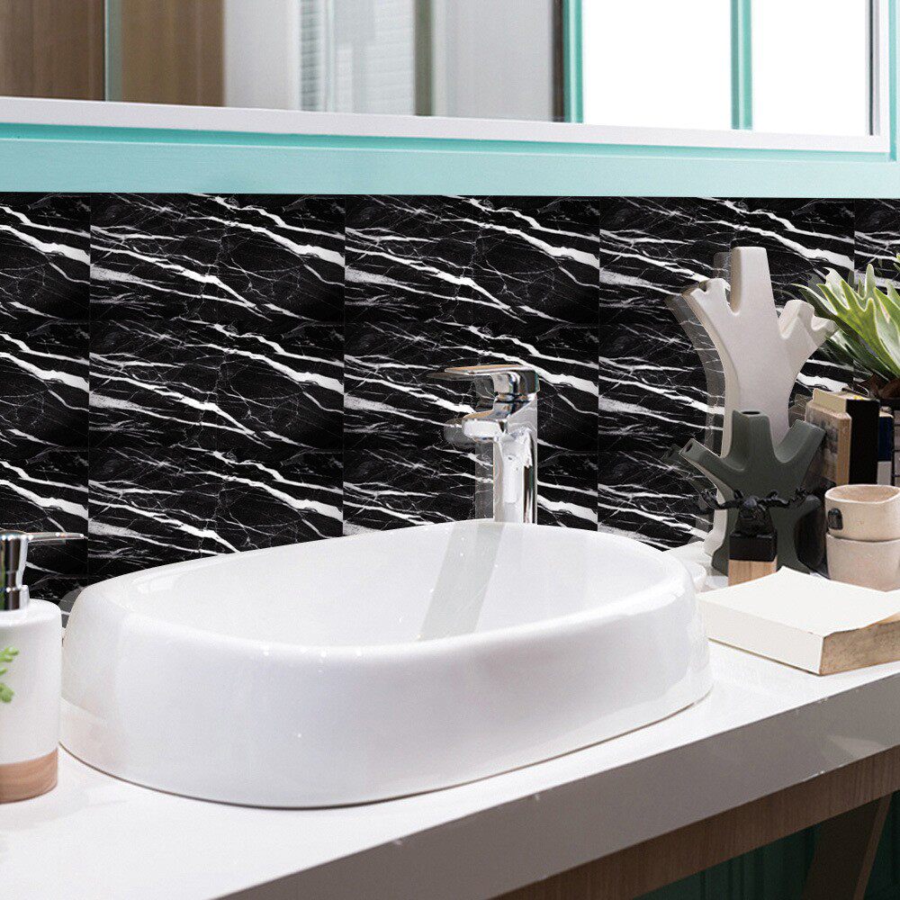 黑白色仿大理石纹瓷砖贴地板楼梯墙面浴室美化防油水装饰画墙贴纸