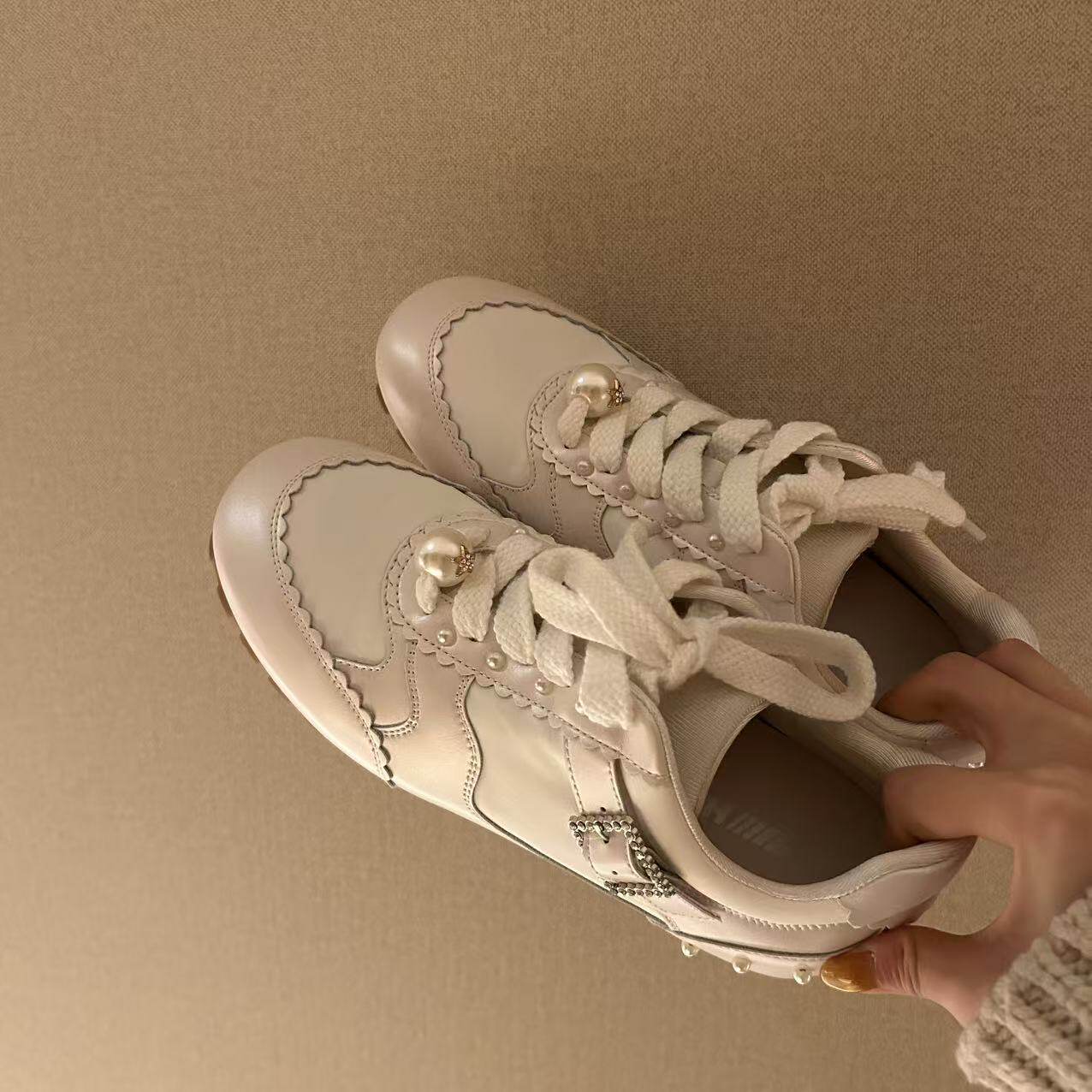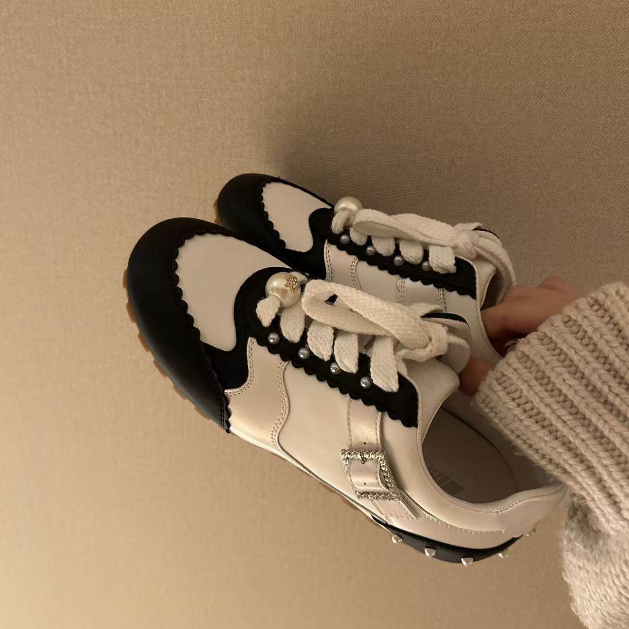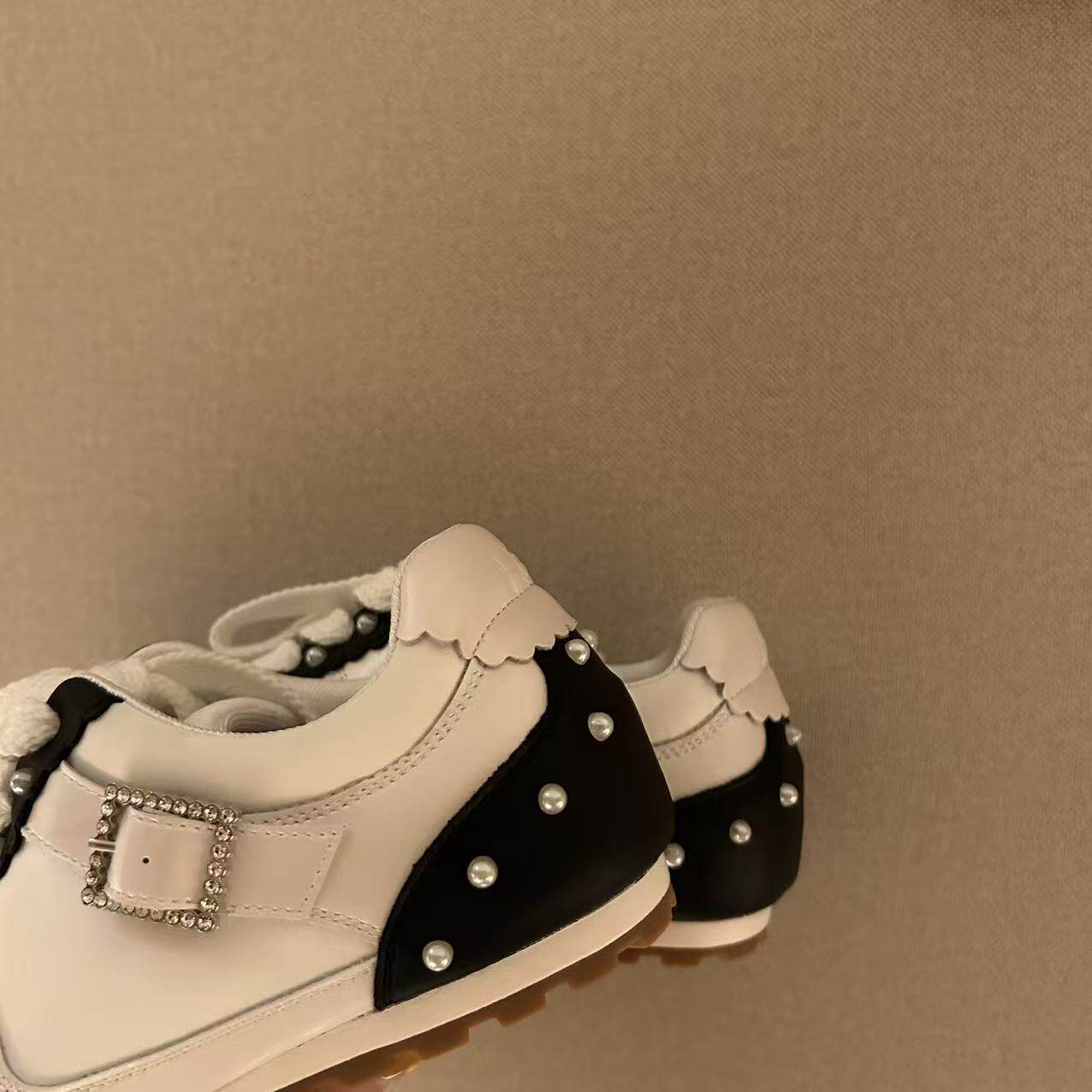 H55女鞋珍珠耳环2026春季新款经典休闲百搭内增高厚底德训鞋女款