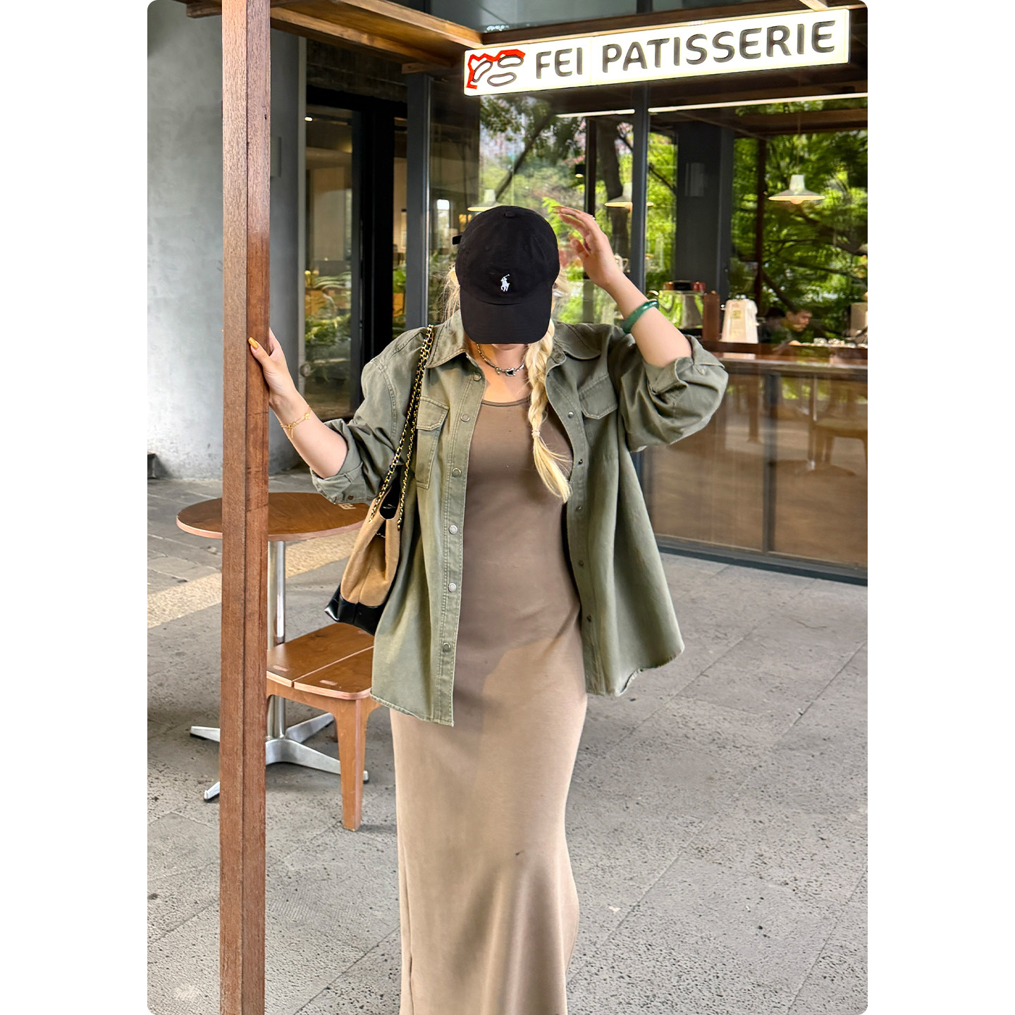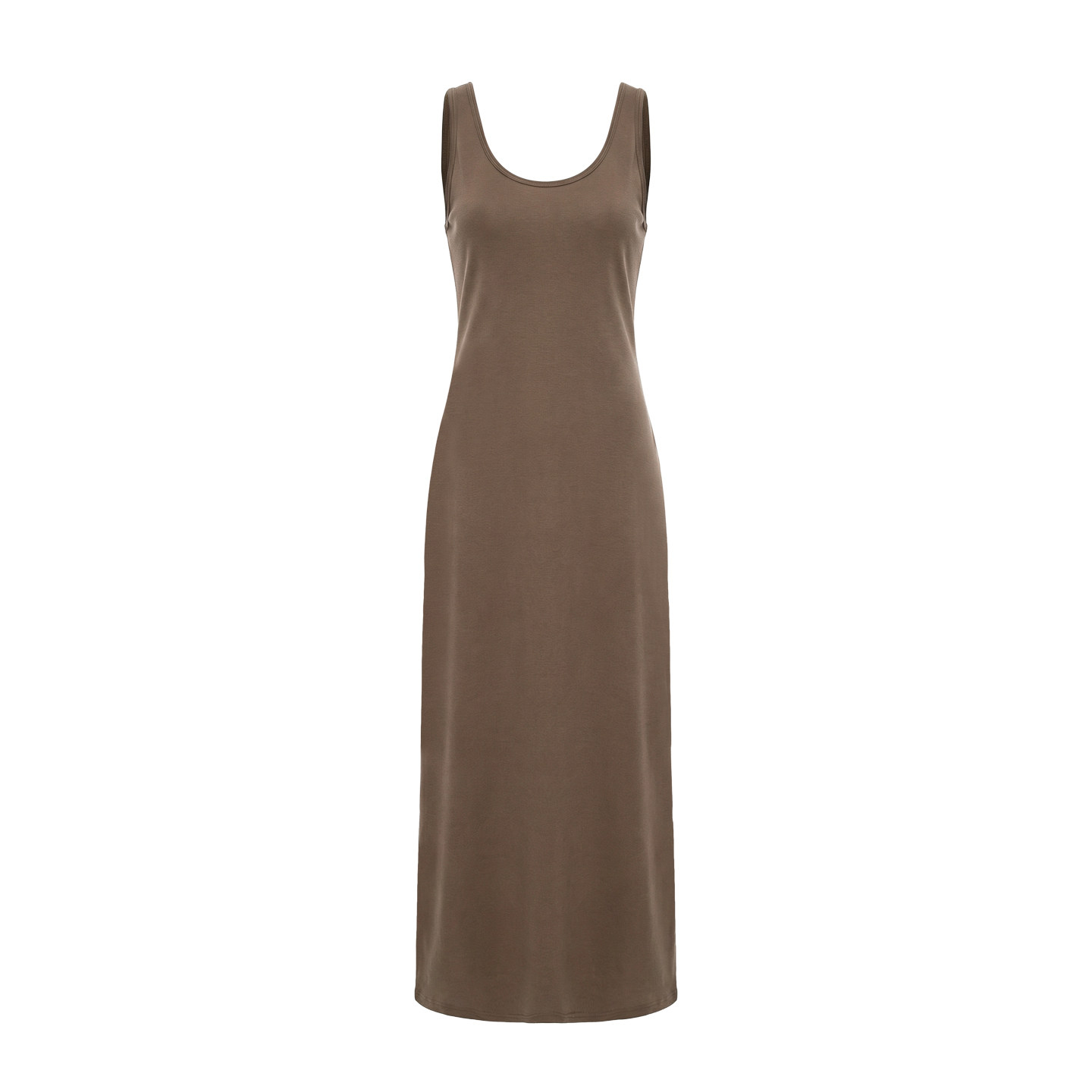 糯米子[轻松律动]修身U领长款空气层吊带连衣裙春收腰长裙裙子
