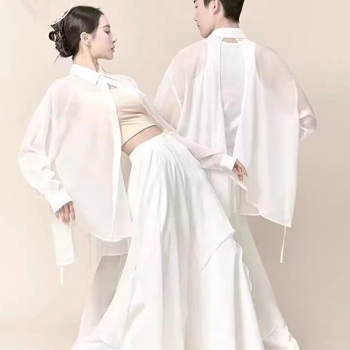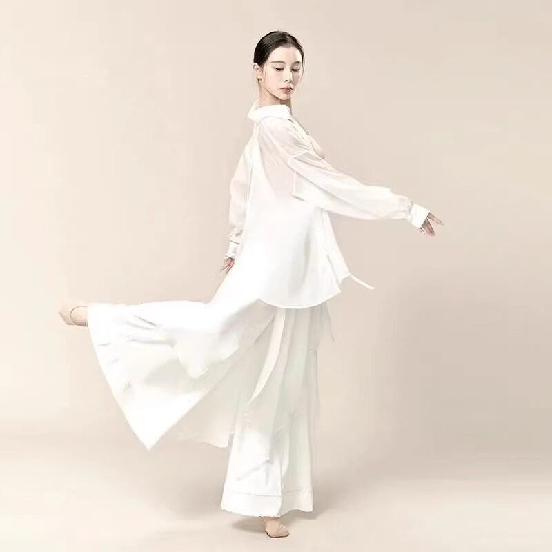 现代舞衬衫飘逸白色舞蹈服套装成人中国舞演出服上衣古典练功舞裙