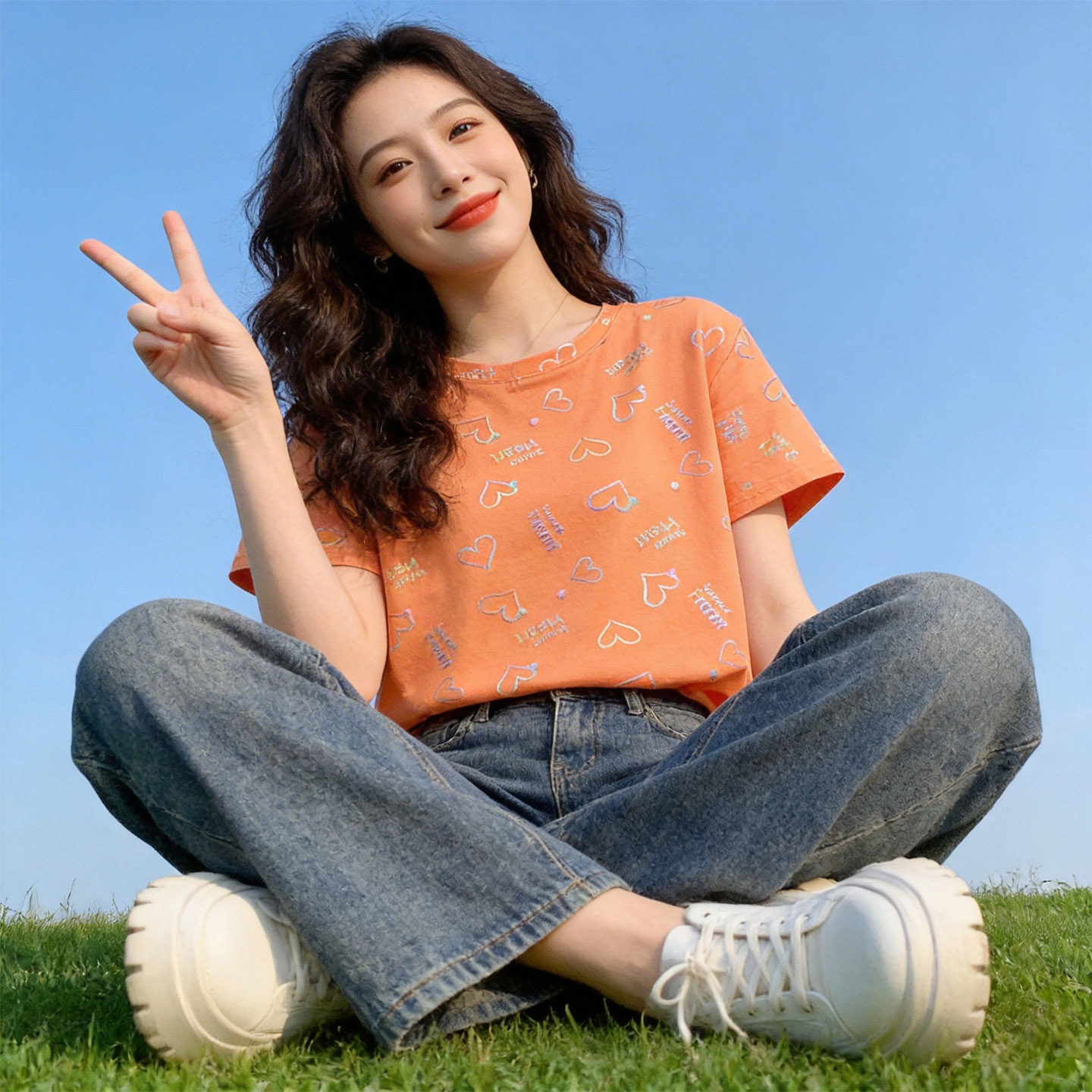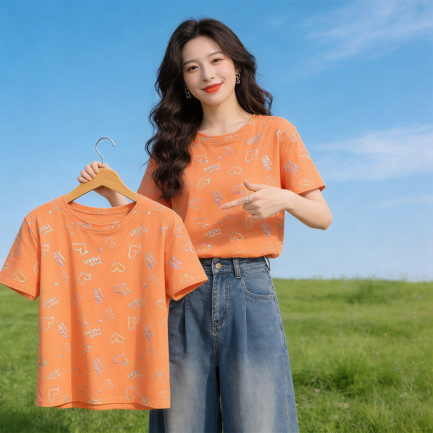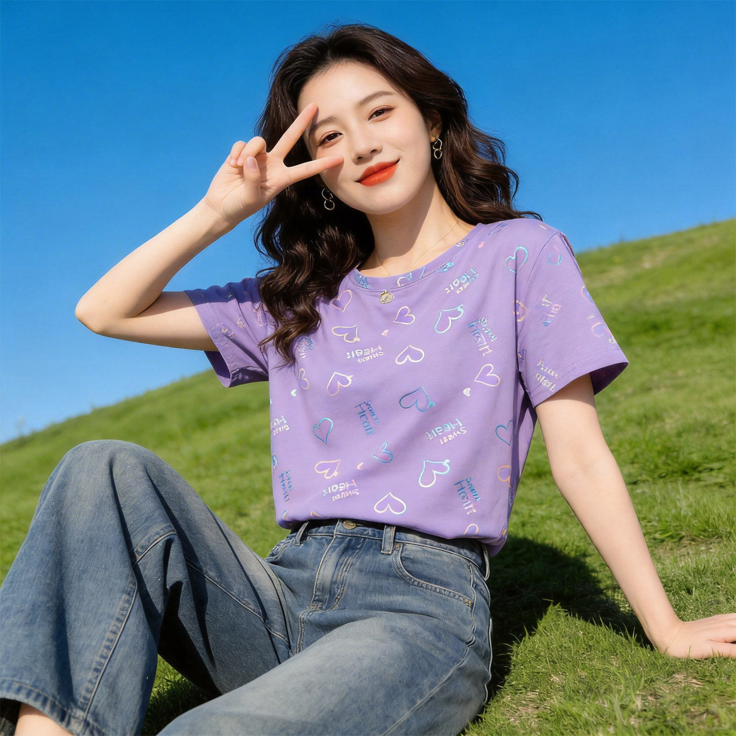 短袖女t恤夏2026新款今年流行爆款女装夏季爱心印花设计感上衣服