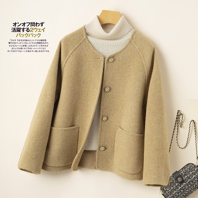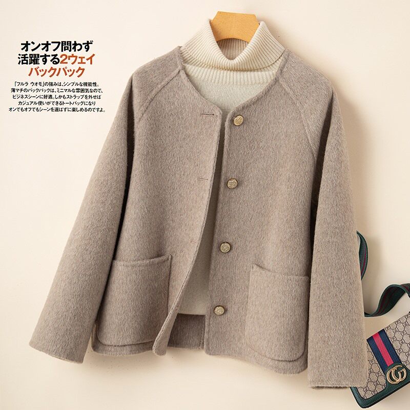高级感灰色双面呢大衣女短款2023新款赫本小香风羊毛呢外套小个子