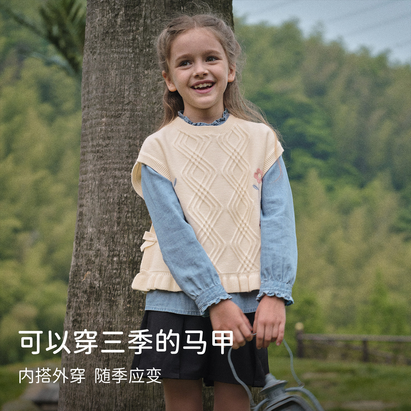 戴维贝拉女童毛衣背心儿童针织衫无袖2026春季新款女大童马甲童装