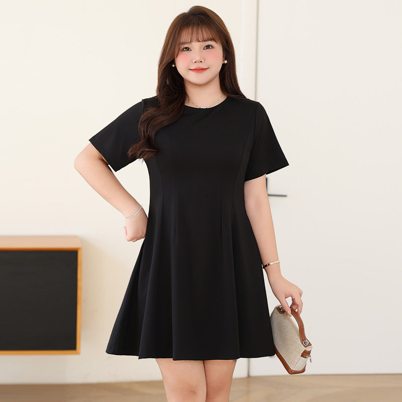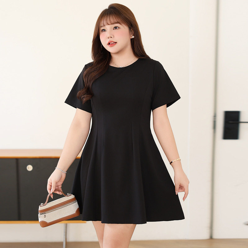 胖mm300斤特大码气质高级感连衣裙女夏季200显瘦a字遮肚子小黑裙