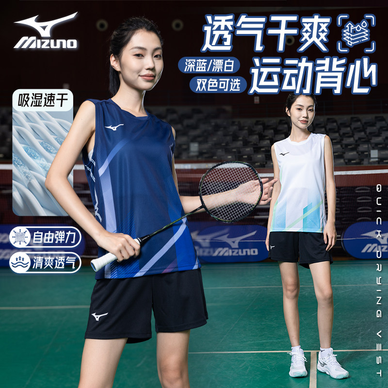 美津浓羽毛球服背心套装女男款2026新款短裤上衣运动服速干衣无袖
