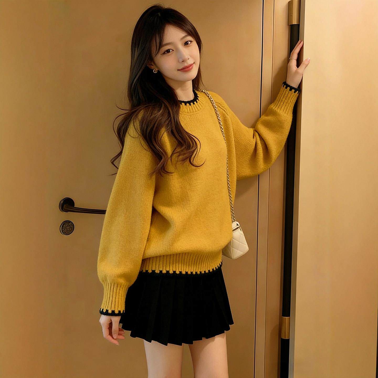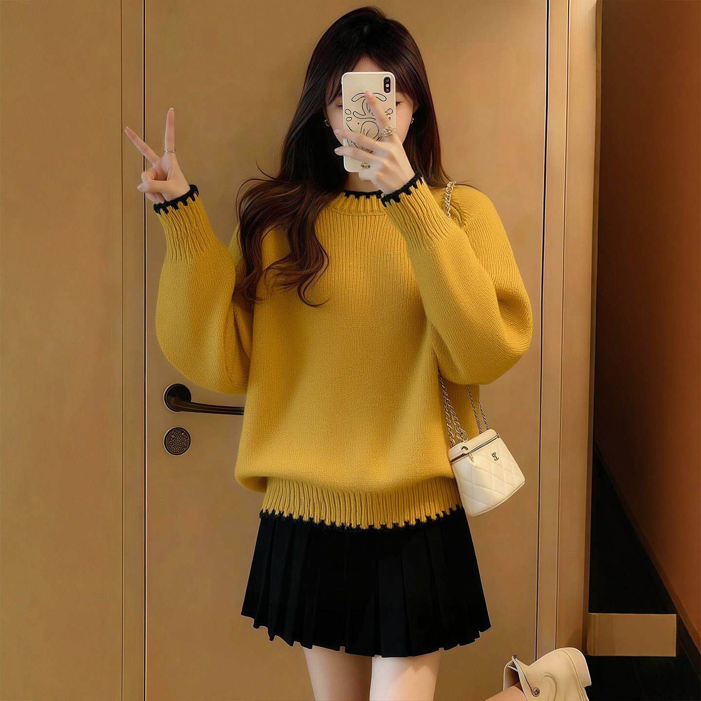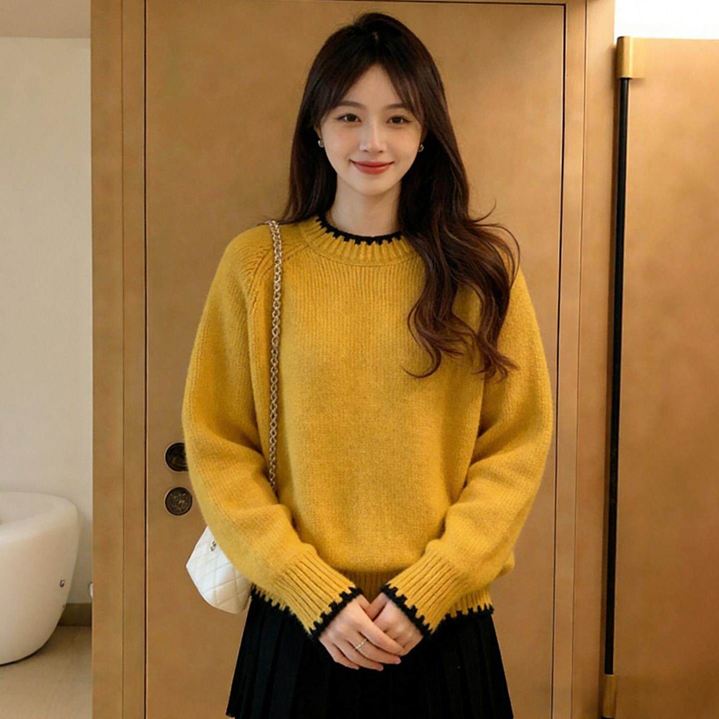 巨好看黄色圆领毛衣女款2026新款冬季可外穿内搭打底衫慵懒高级感