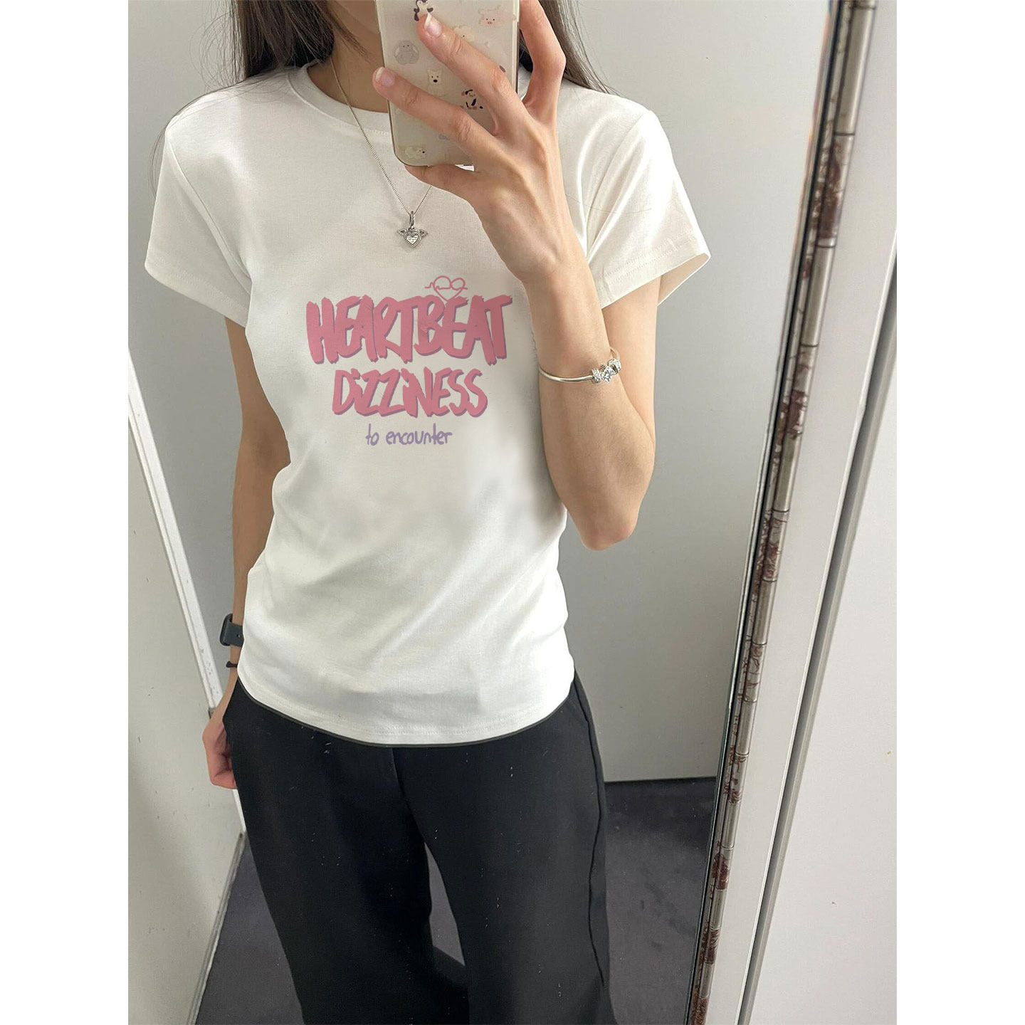 白色修身显瘦短袖t恤女装2026新款今年流行爆款夏季卡通印花上衣