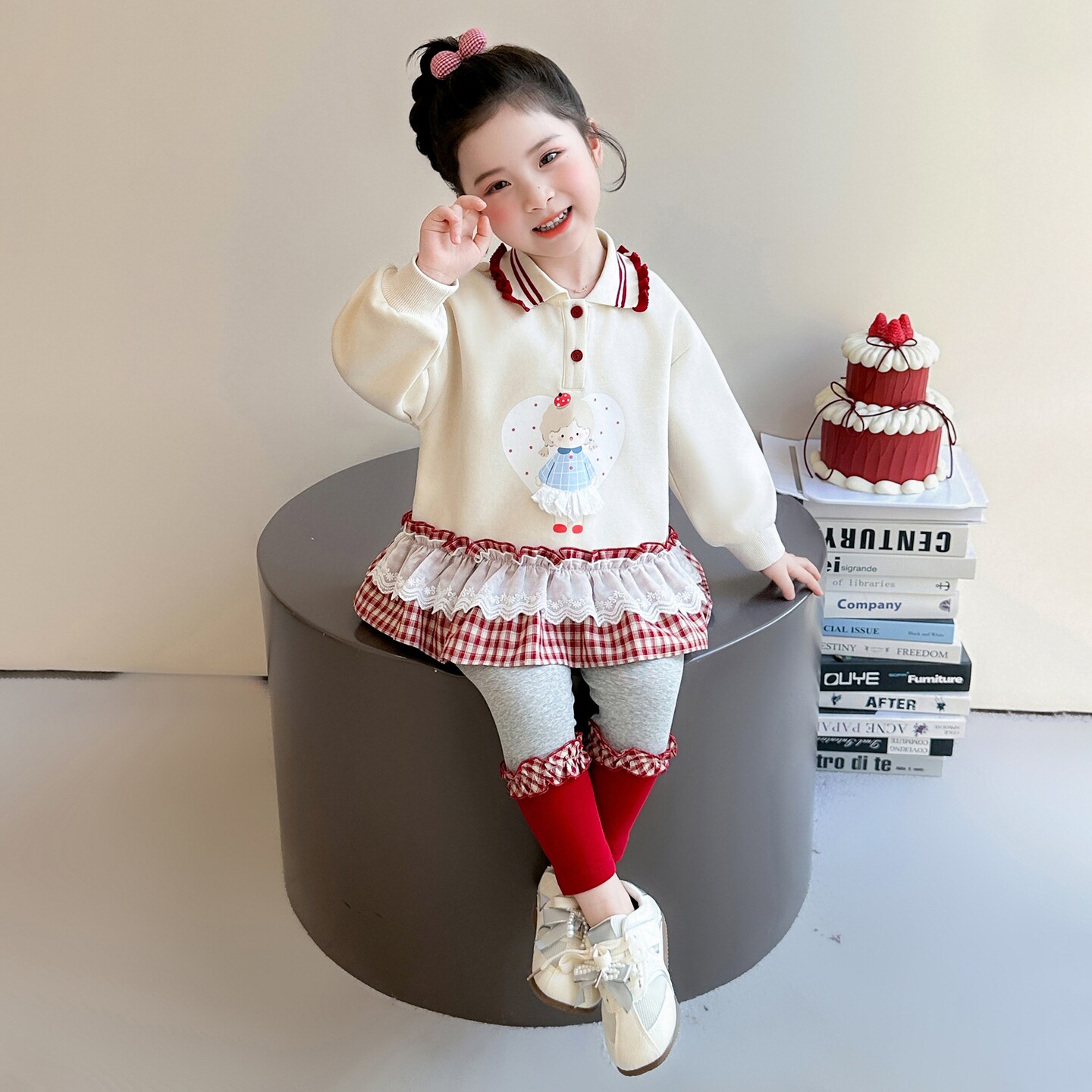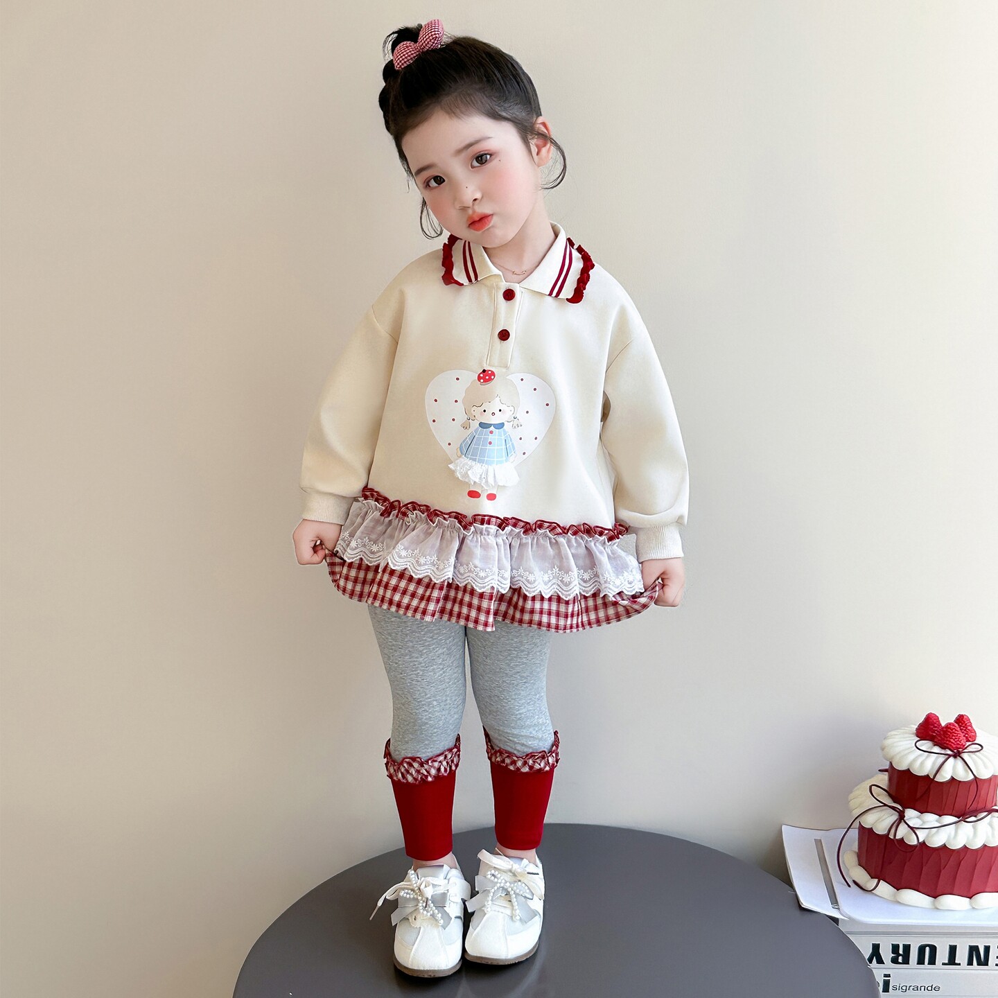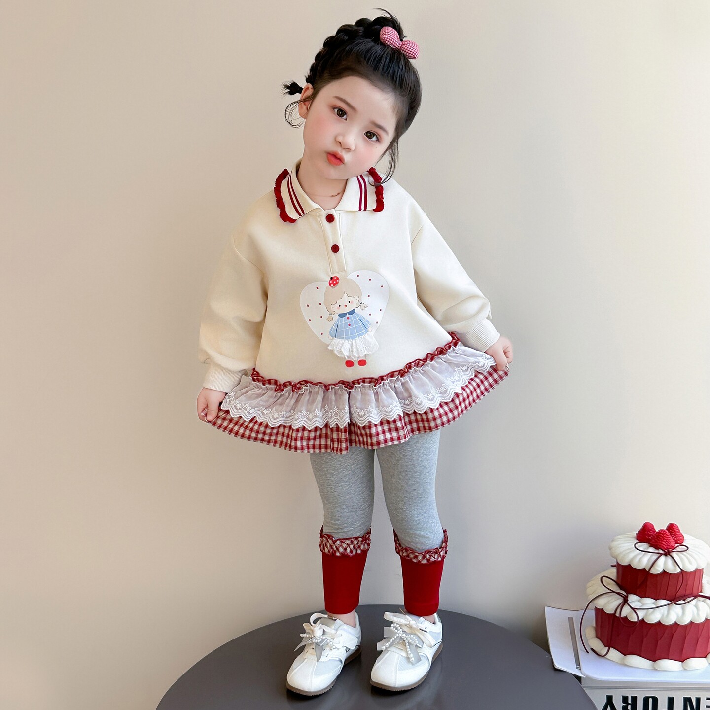 女童春秋款波点套装2026新款洋气时髦儿童女宝宝春季春装早春卫衣