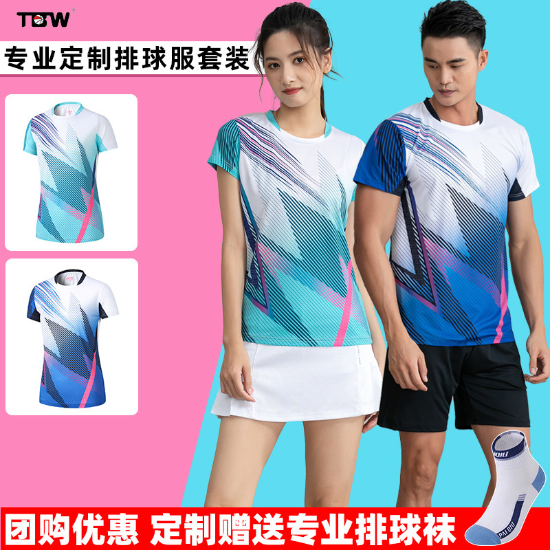 排球服套装女定制羽毛球服运动印字短袖队服比赛专用气排球服装男
