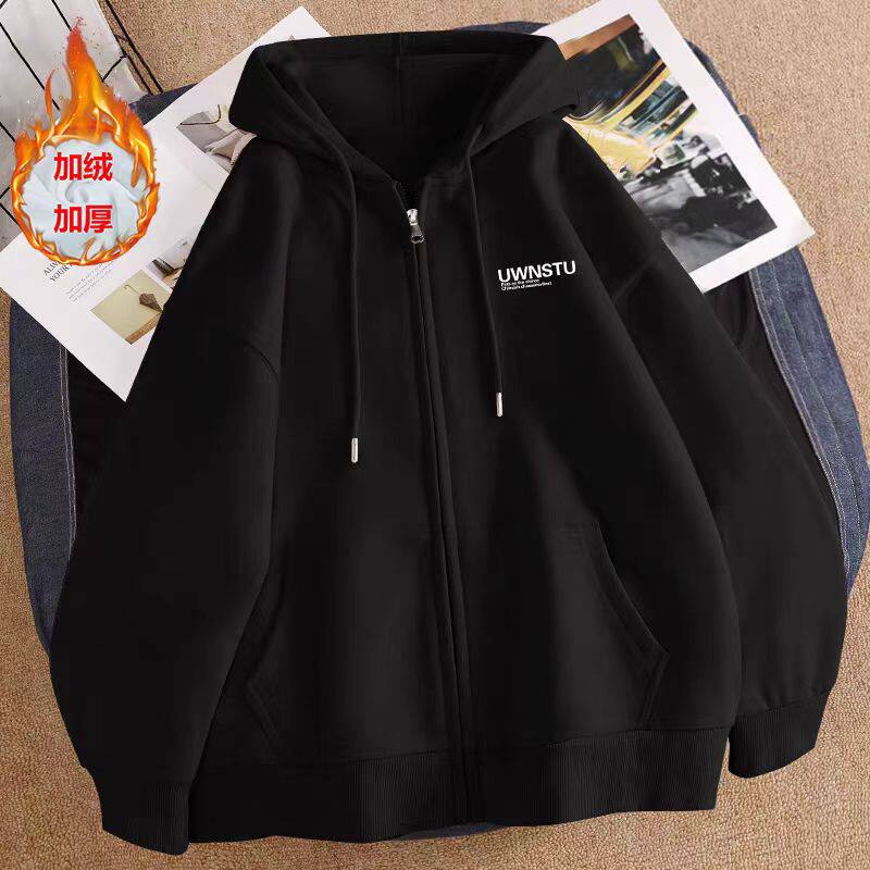 连帽开衫卫衣男女童春秋装薄款加厚中大儿童黑色拉链外套