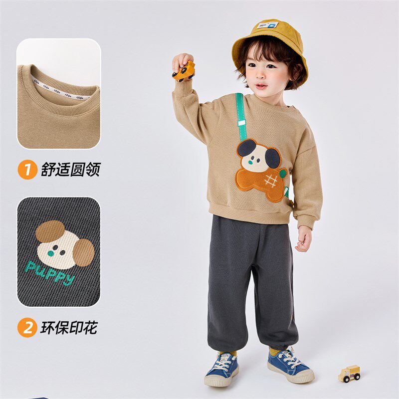 [米妮绒]儿童纯棉卫衣套装春款男童长袖上衣卡通女童运动裤春季潮
