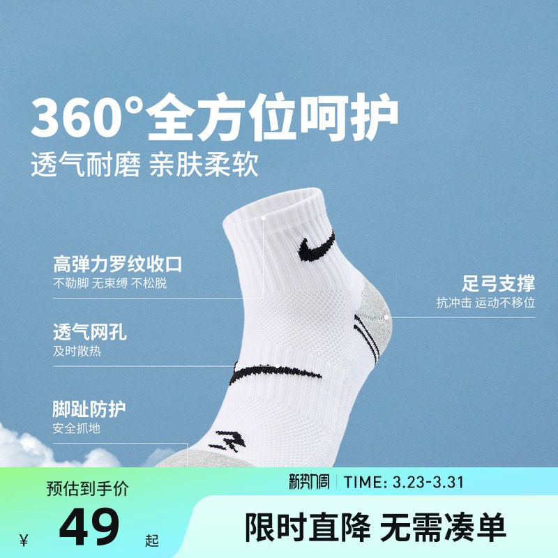 【3双装】Nike 3brand运动袜儿童袜子男女童棉袜休闲袜N32543023