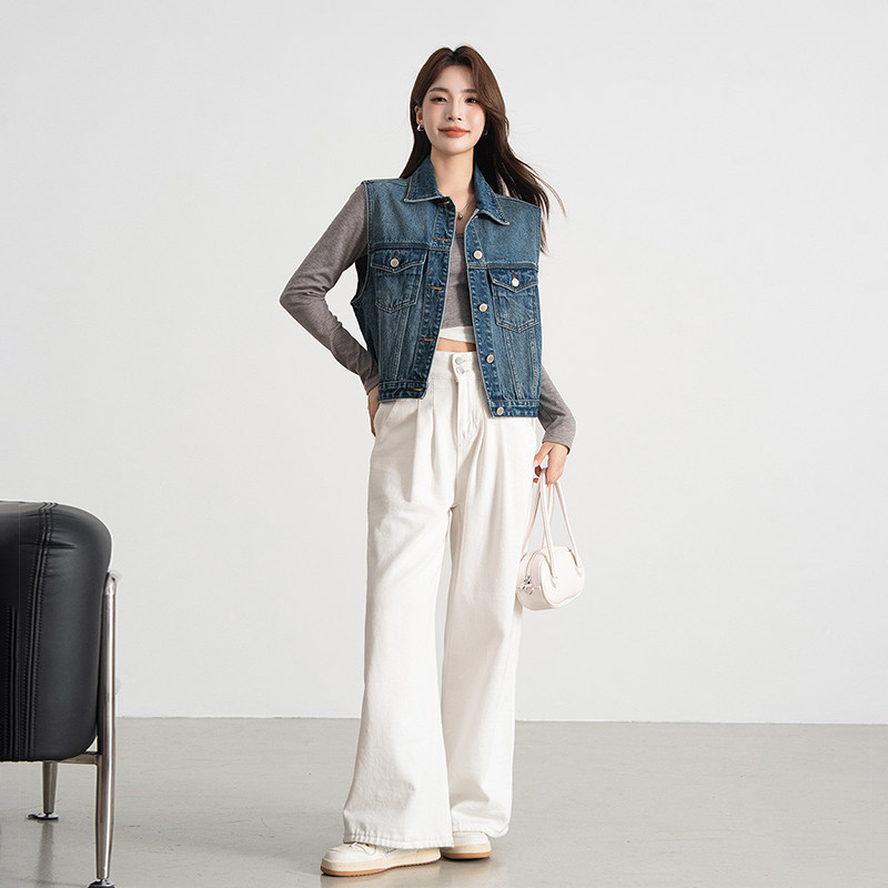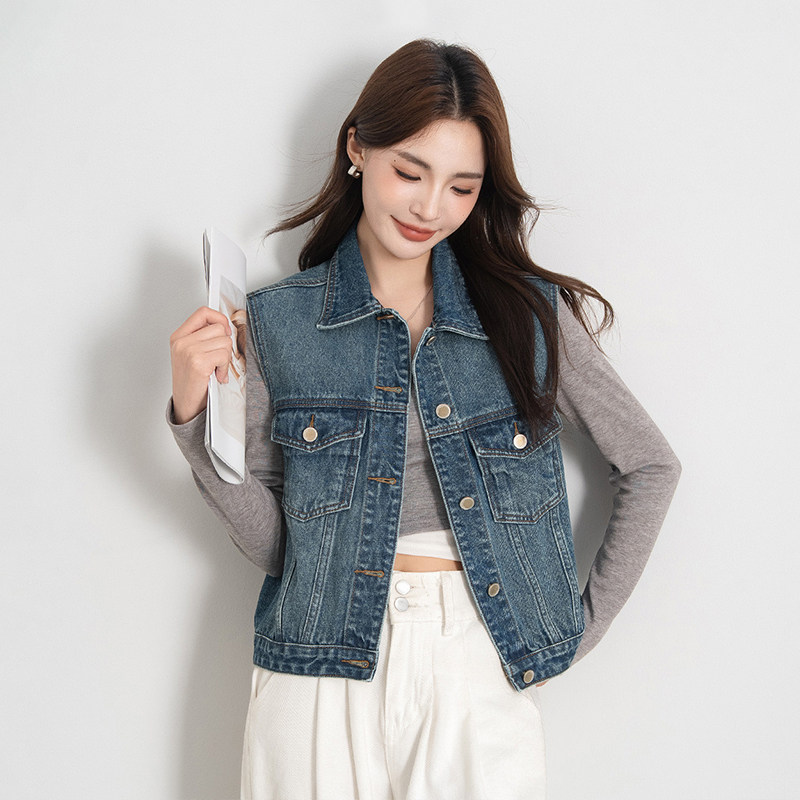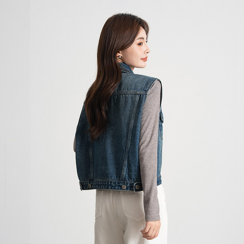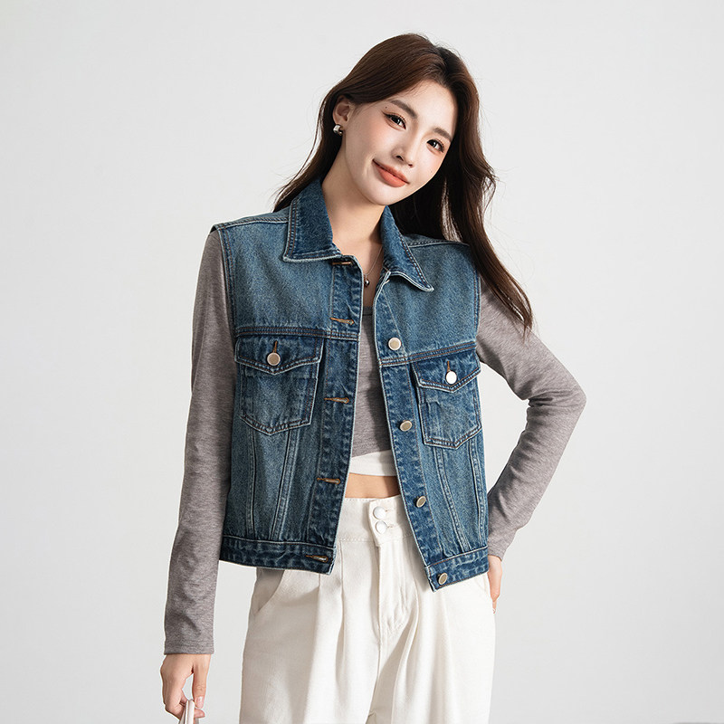热风港式复古风叠穿设计感牛仔马甲春秋女款百搭休闲潮流马夹外套