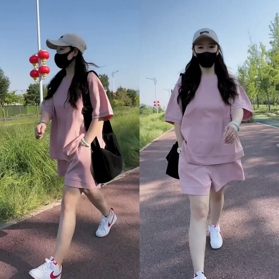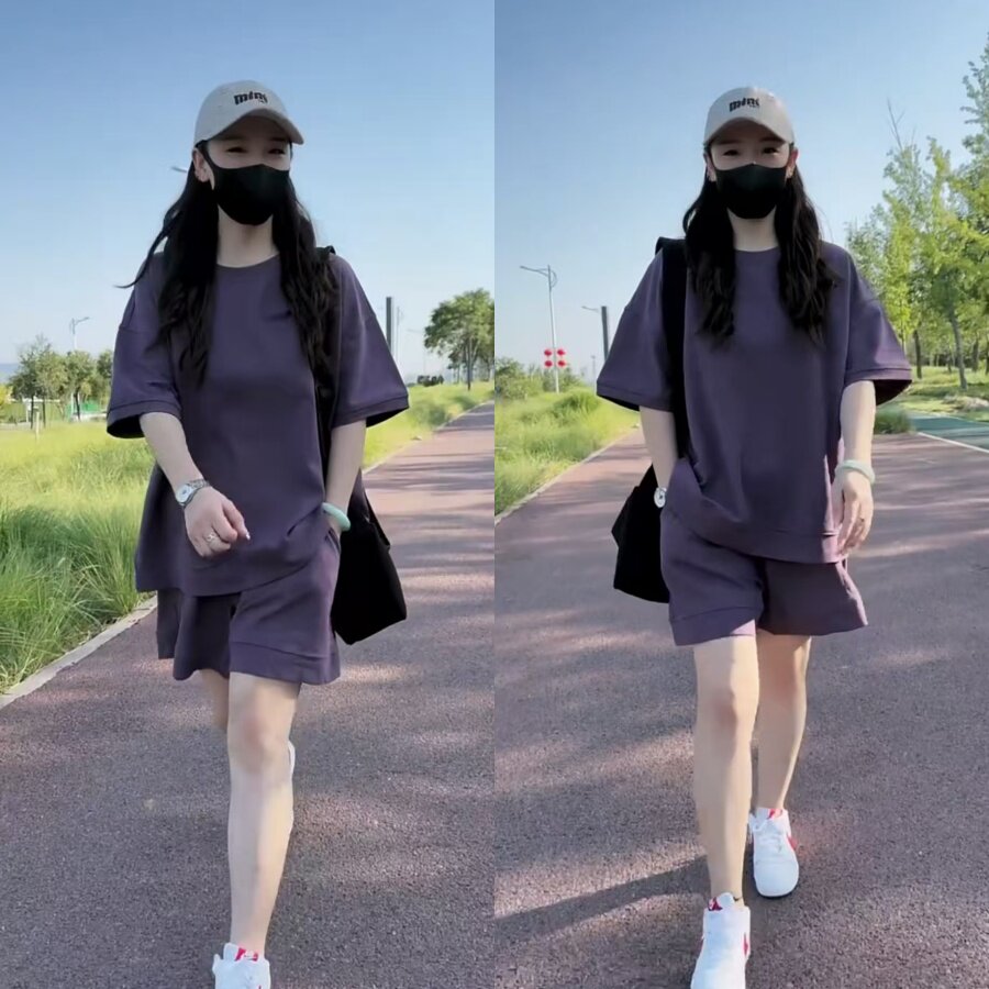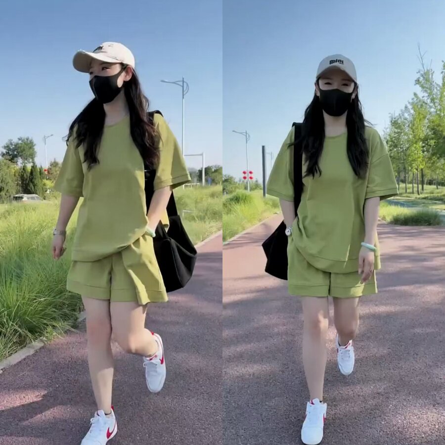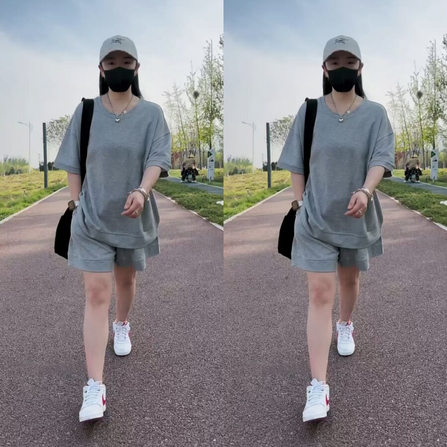 休闲运动宽松半袖短裤套装2026夏新款微胖遮肉彩色闺蜜出游两件套