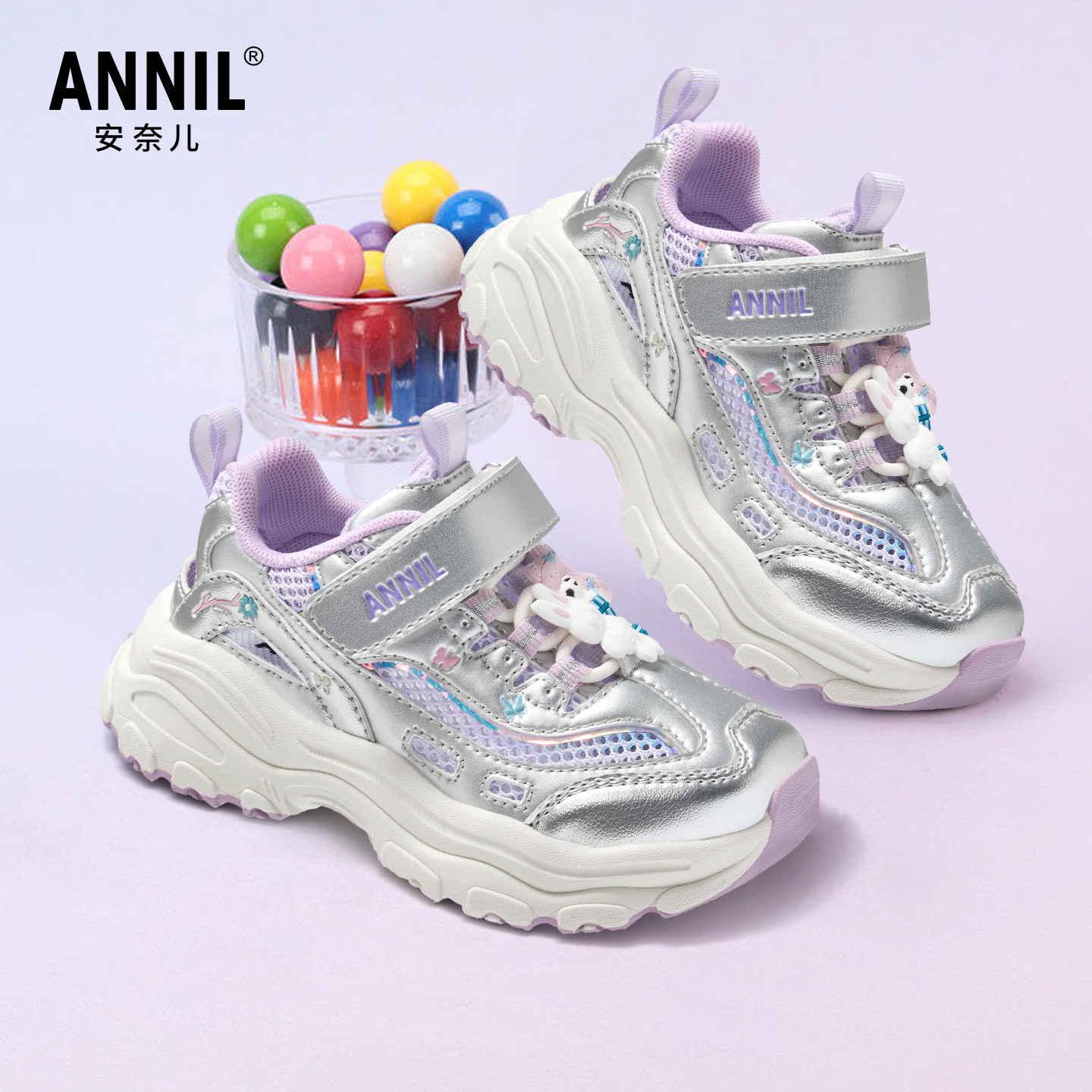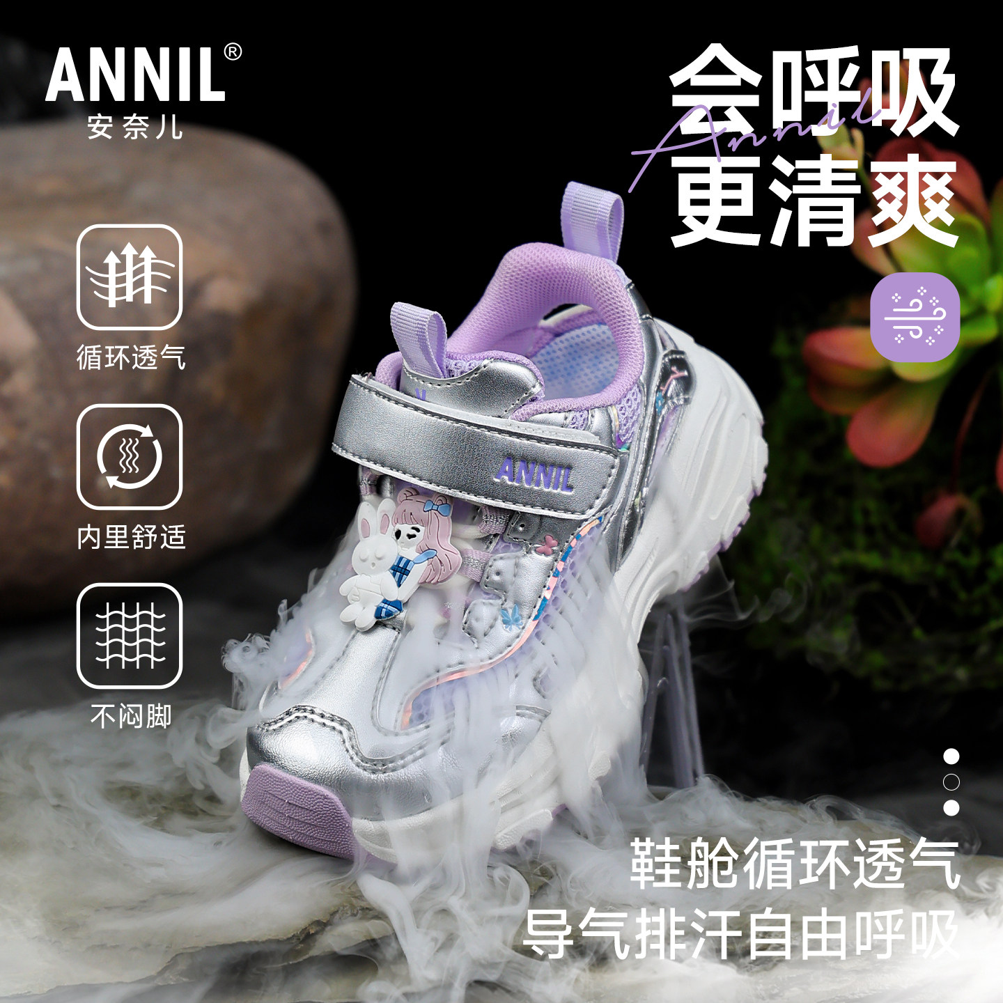 311线报网描述:安奈儿女童软底透气跑步运动凉鞋