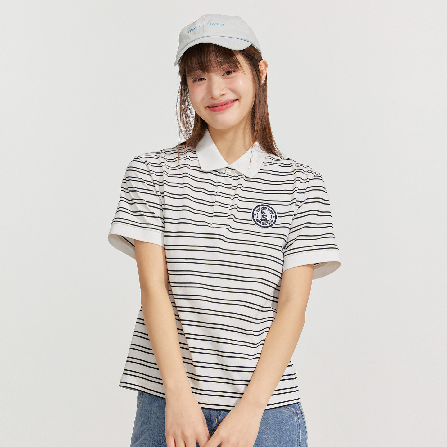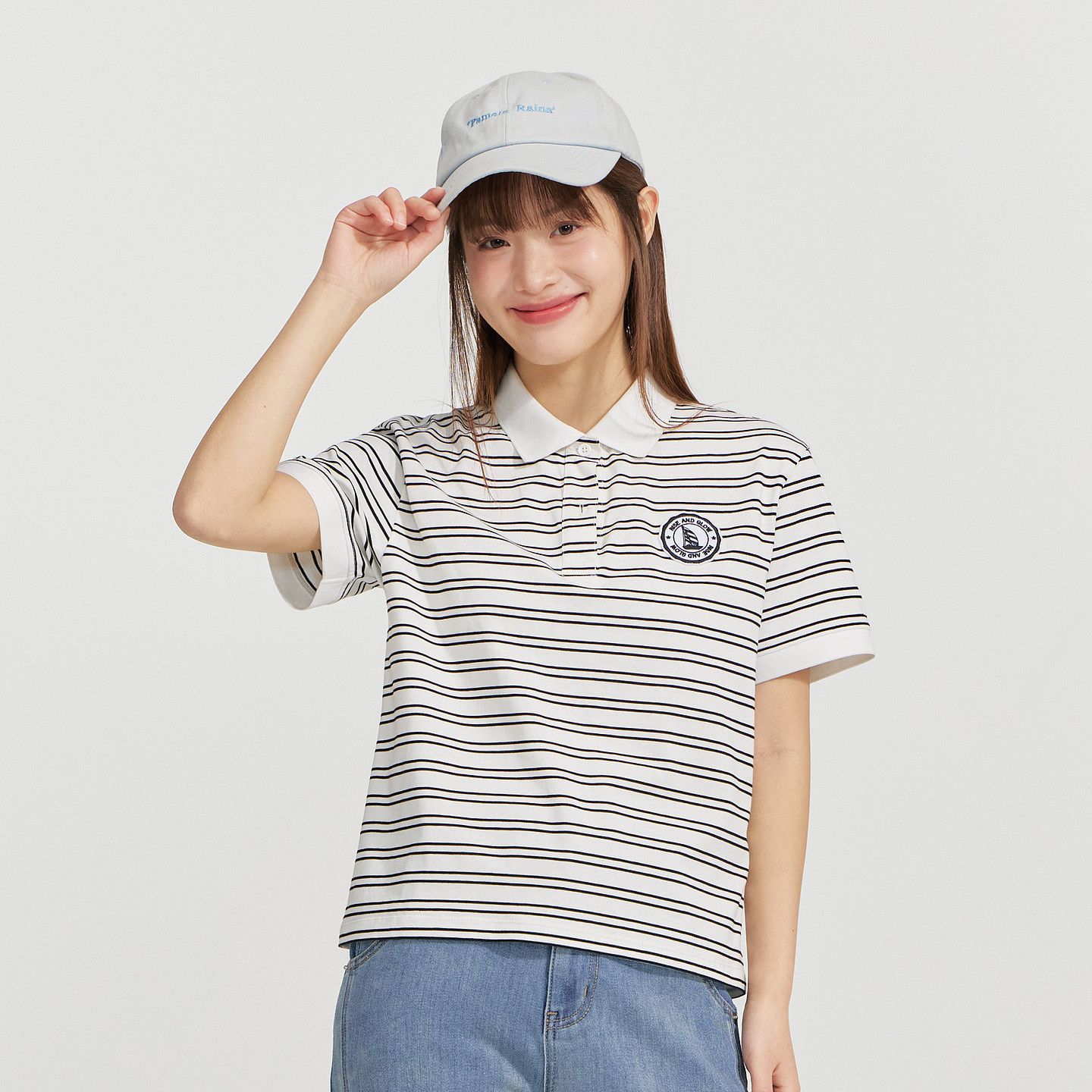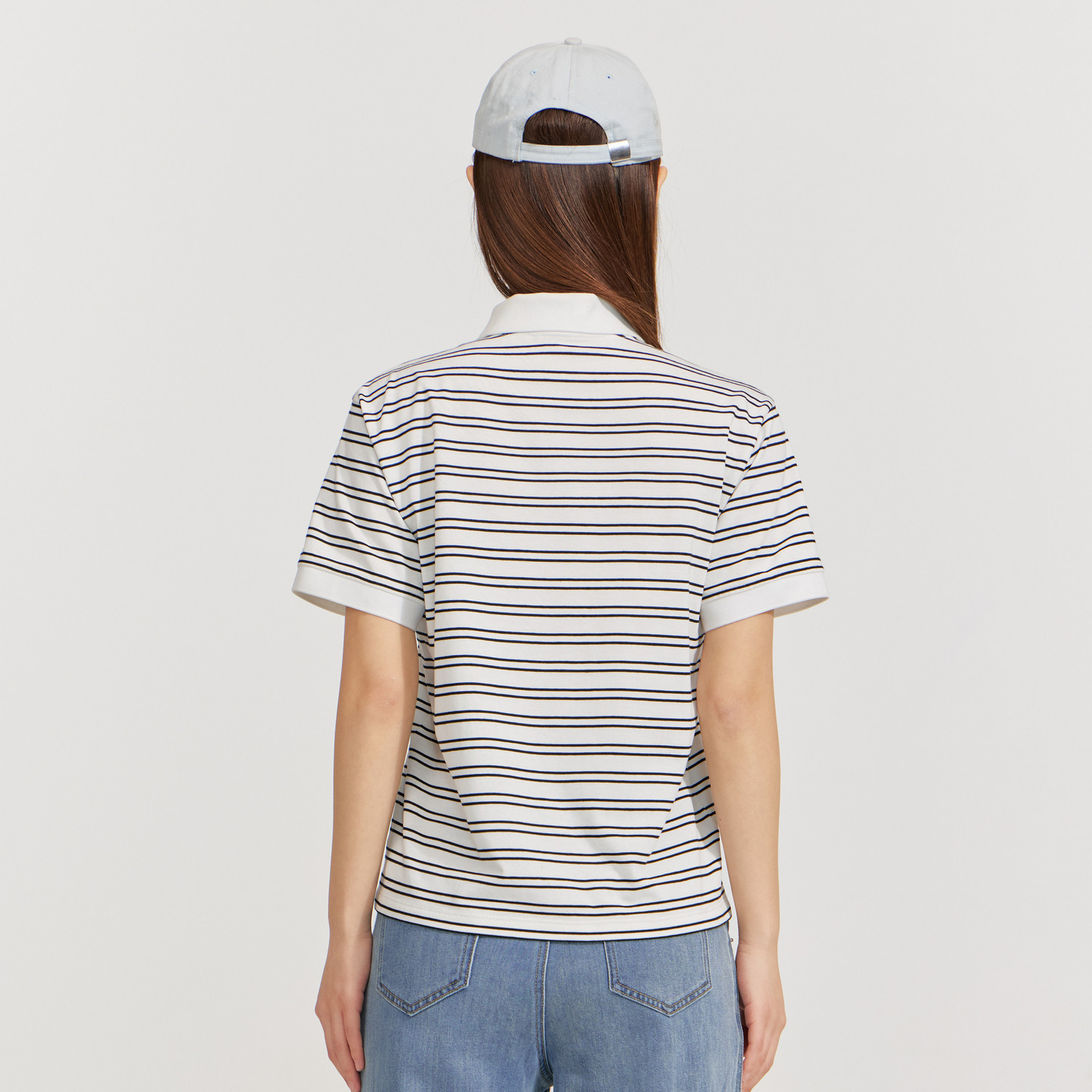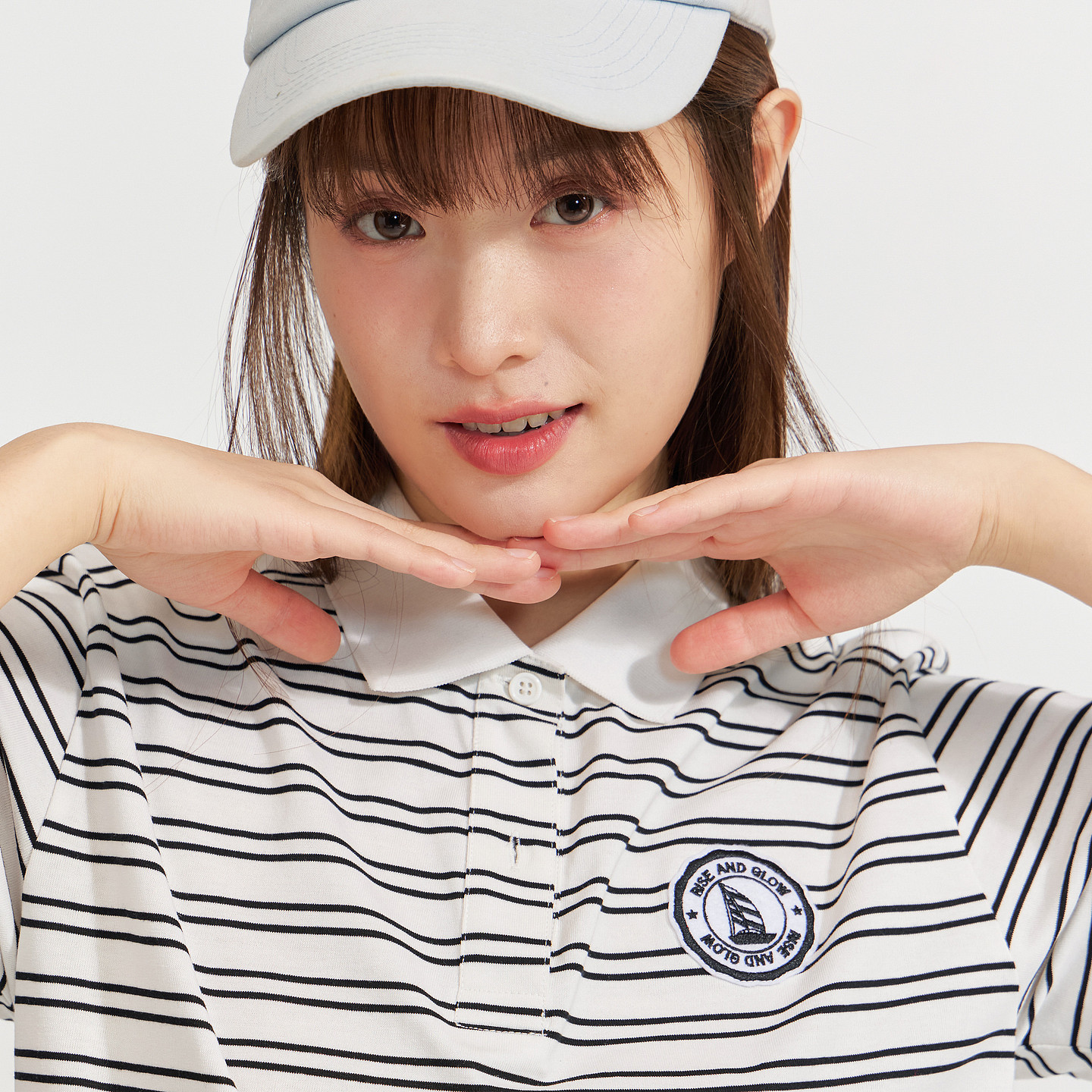 笛莎官旗青少年2026夏新款刺绣圆标翻领短袖上衣T恤女条纹polo衫