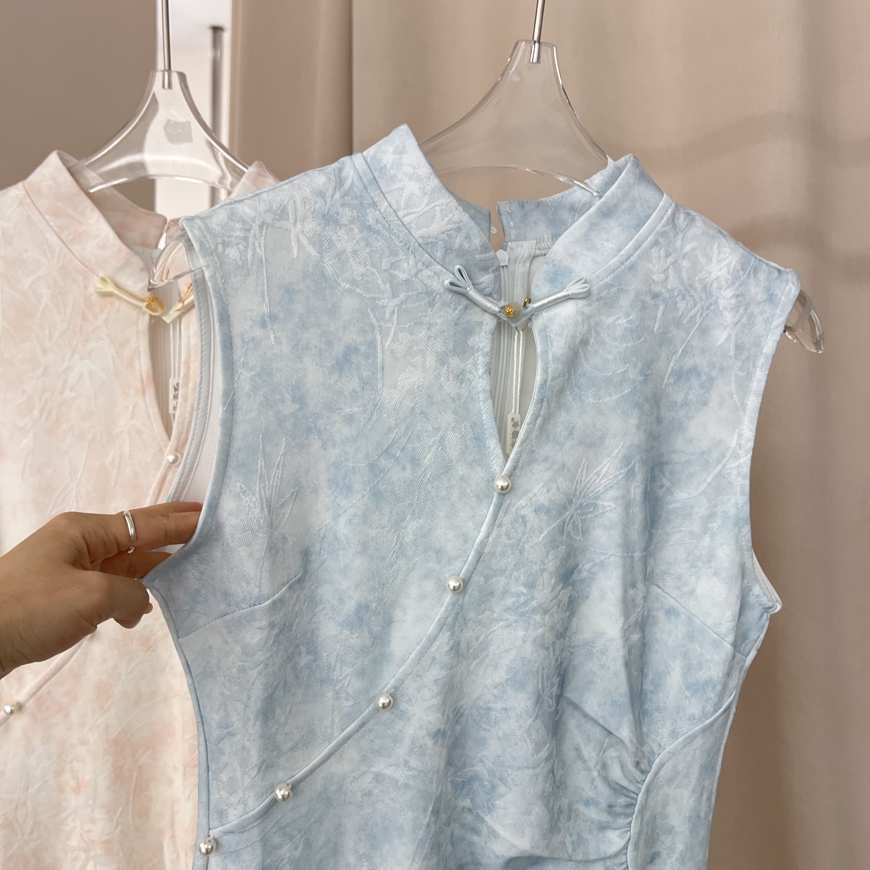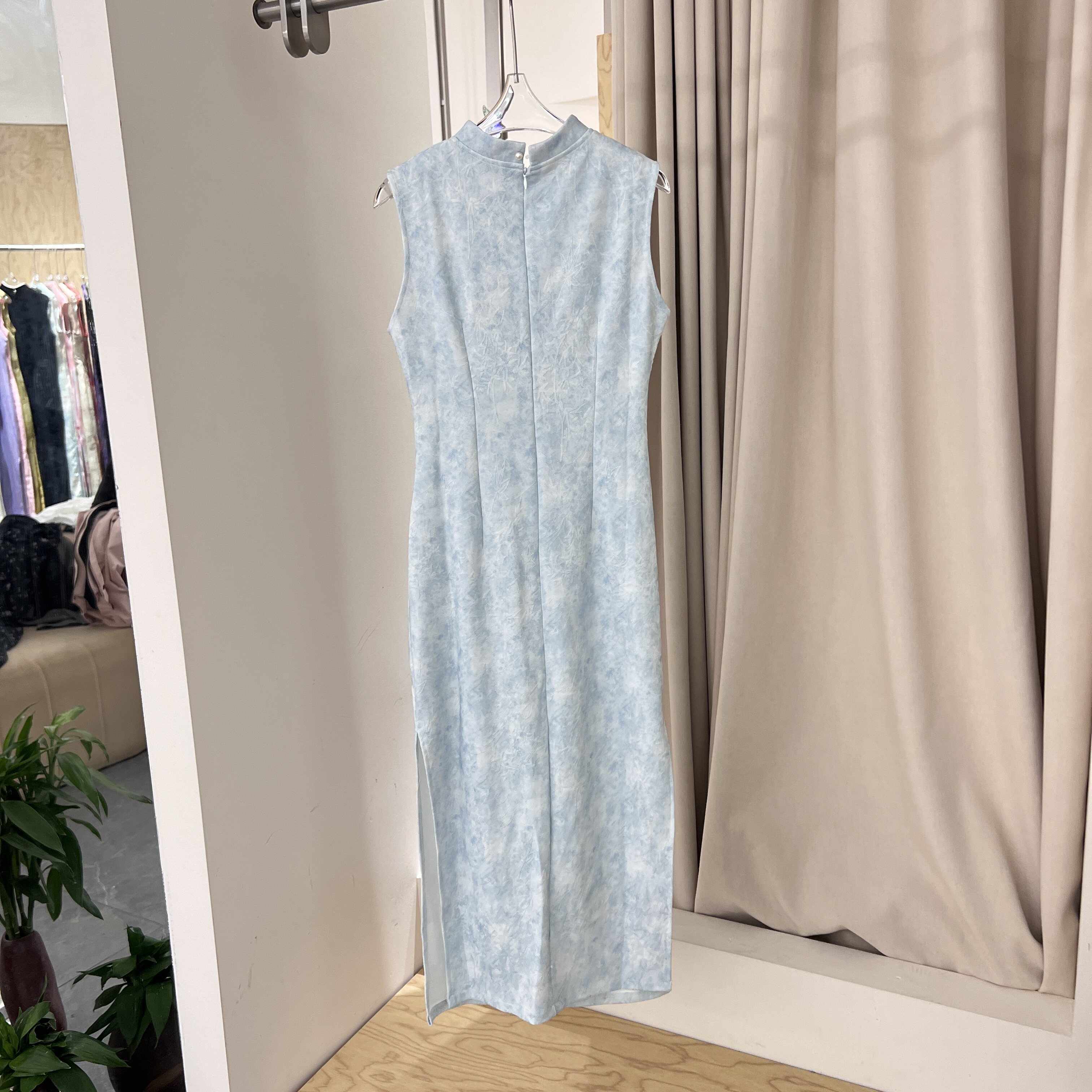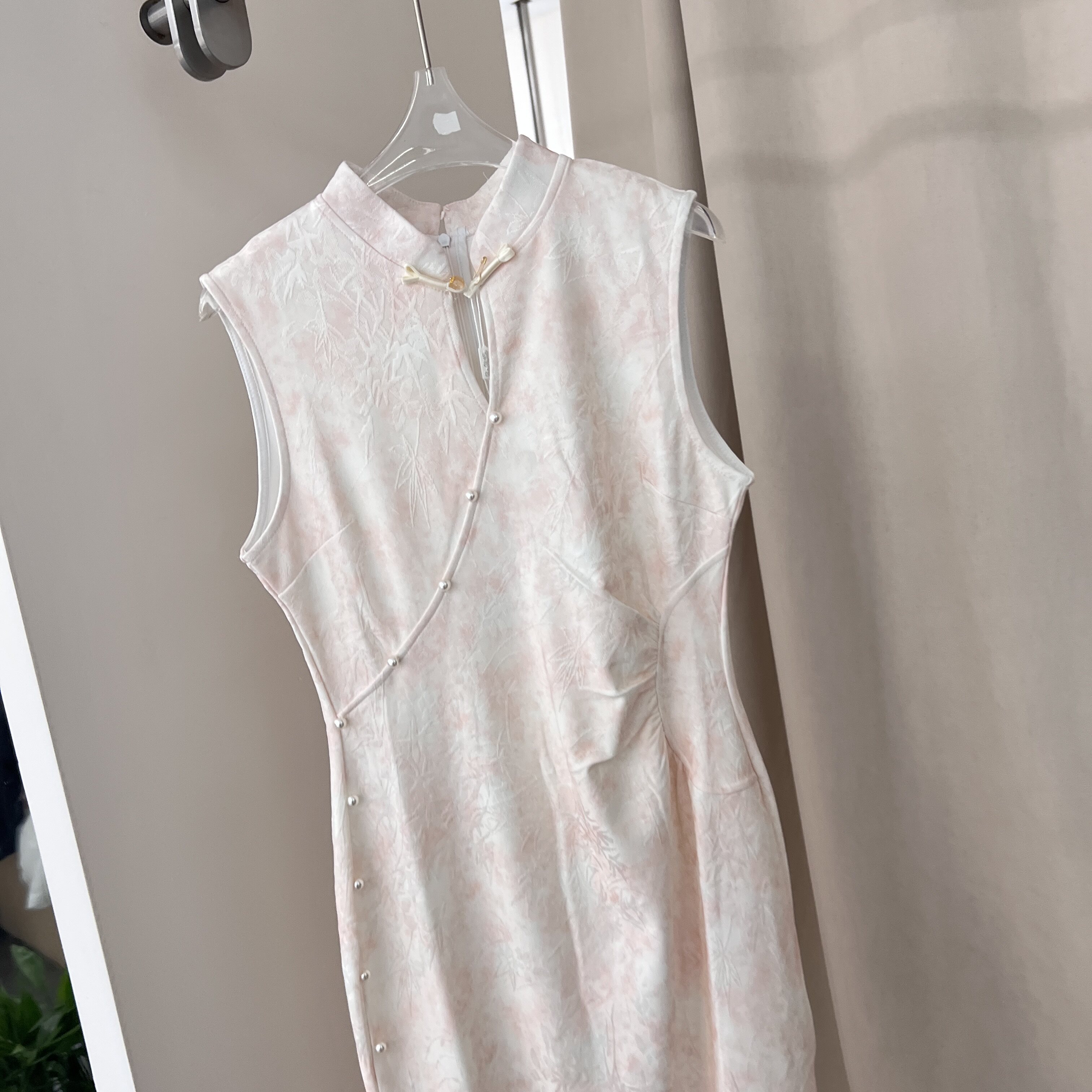 复古风无袖长款旗袍女2026夏季新款日常竹叶提花透气中式连衣裙子