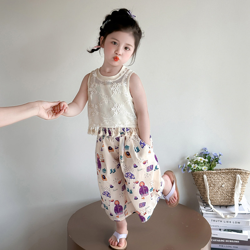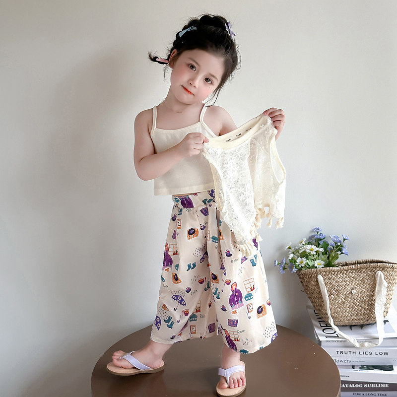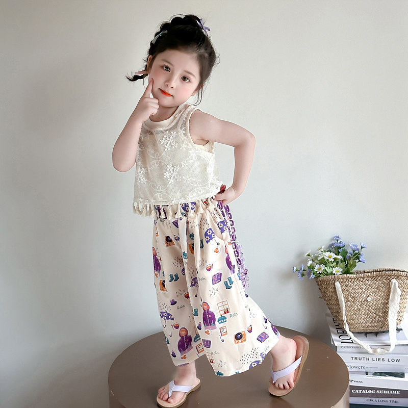 女童薄款套装夏装儿童超好看韩系背心洋气裤子网红炸街阔腿裤童装